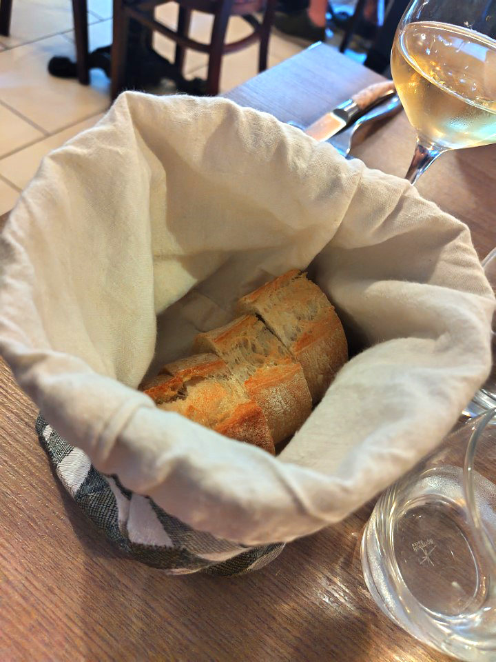 間最初に飲んだのは、ロワゾーのオリジナルシャンパンだったかなと思ってたけど、今みたらアルベールビショーが作ってるのでシャンパンではないな。クレマンやったのかも。そのあとはピュリニー・モンラッシェ、だーりんはムルソーを飲んだと思う。料理は美味しかったし、このパンが美味しかった!時間ないのでだーりんは前菜とメイン、私はメインとデセールにした。ところが、デザートが全然来ない!アルバイトみたいな若い男の子が全然頼んだことを出来ないし、すごく時間がかかってたのでちょっと心配してたけど。 |