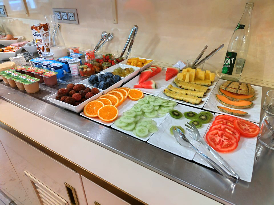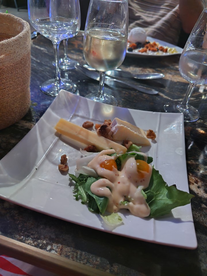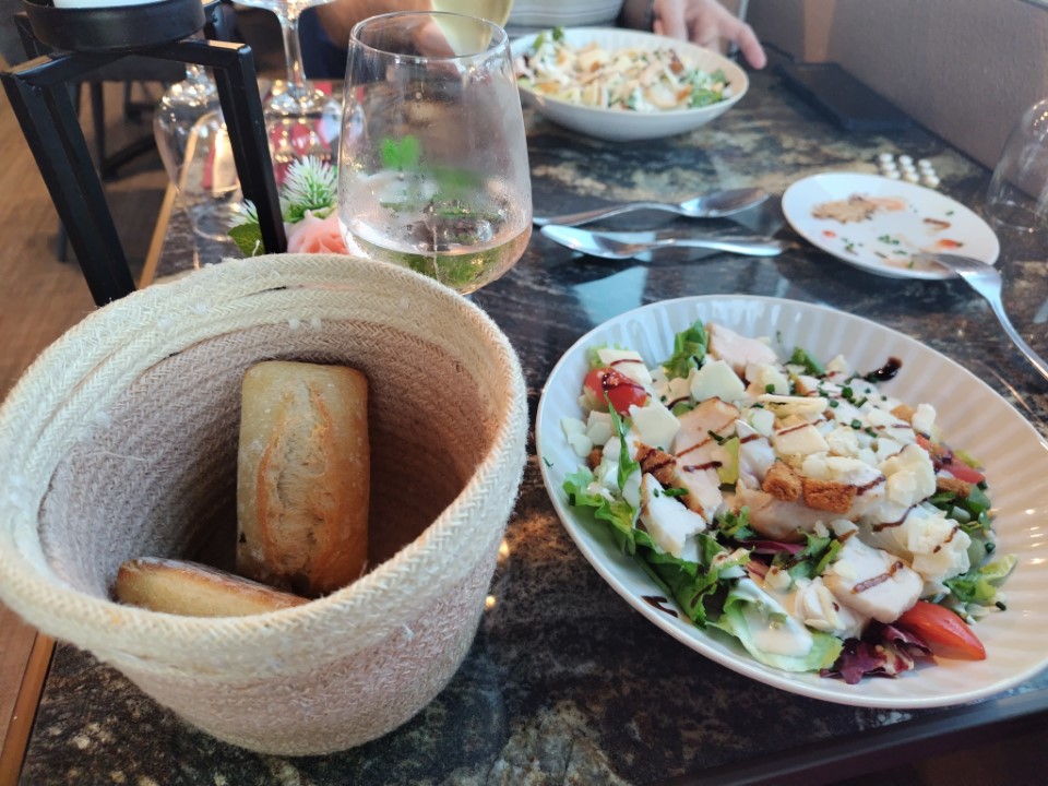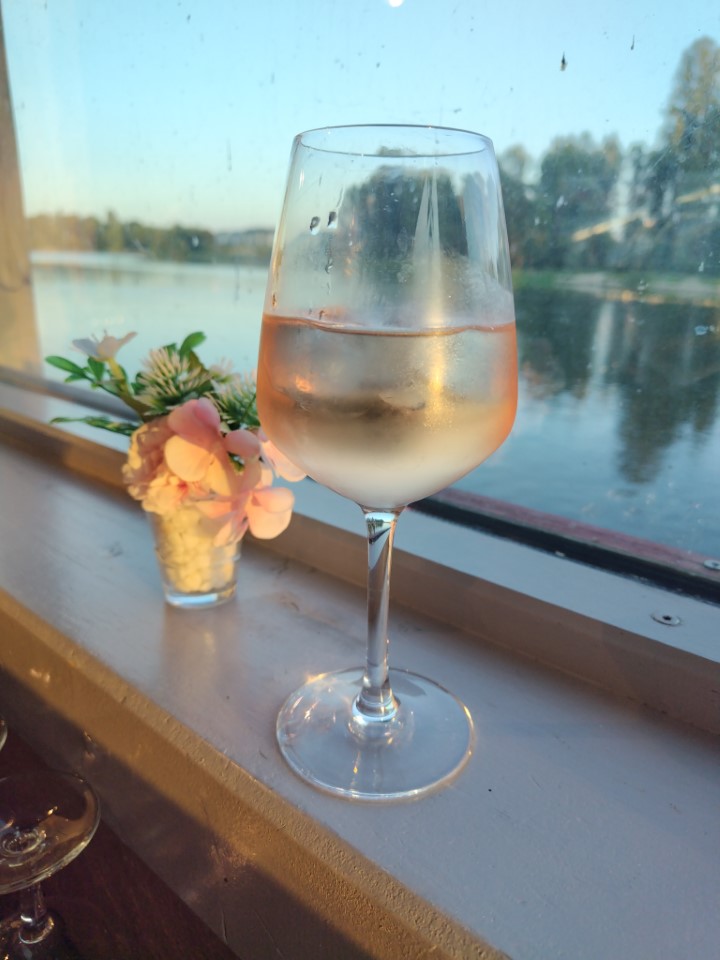 まだ明るいのでロワール川を眺めながらワイン♪ワインはせっかくのロワールなのでトゥーレーヌにした。シェーブルサラダとか美味しかったけど、やっぱり量が多い。最後のデザートも食べるのか大変やった。夕食は111.4€。 |