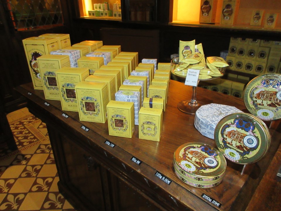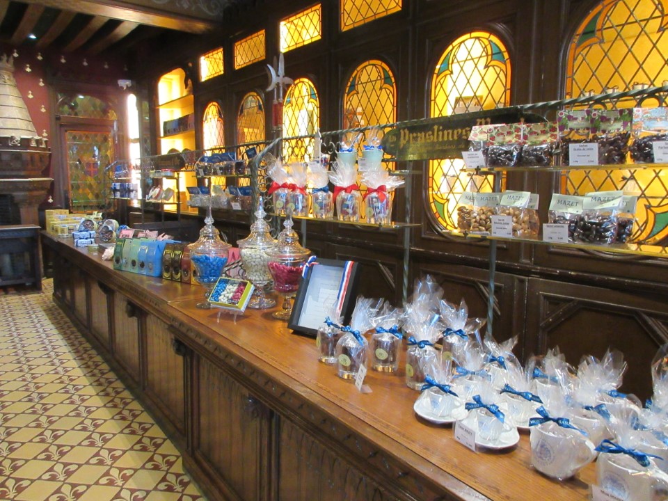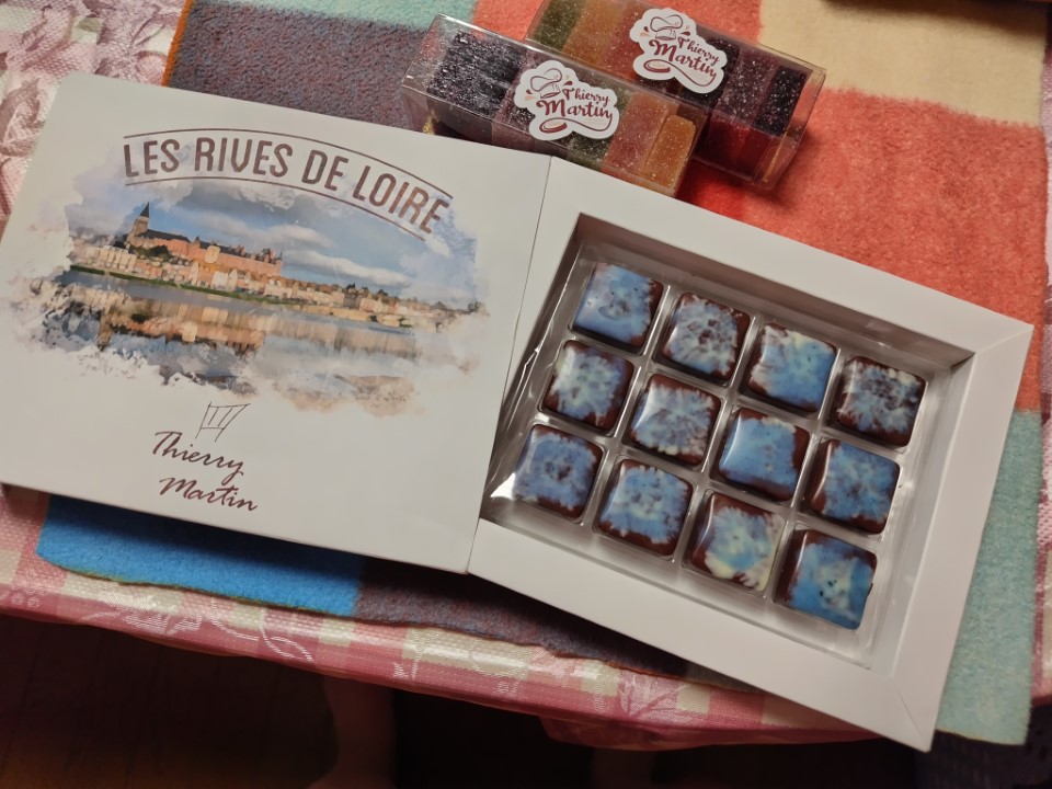 そして、行きたかったティエリーマルタンのチョコレート屋さん。何しろ高くてお土産に出来そうなチョコレートがない。でも自分用にジアン城のみ風景が描かれてたパッケージと、ブルーがかかったチョコレートが綺麗なので買った。あとはお土産にフルーツゼリーを買った。 |