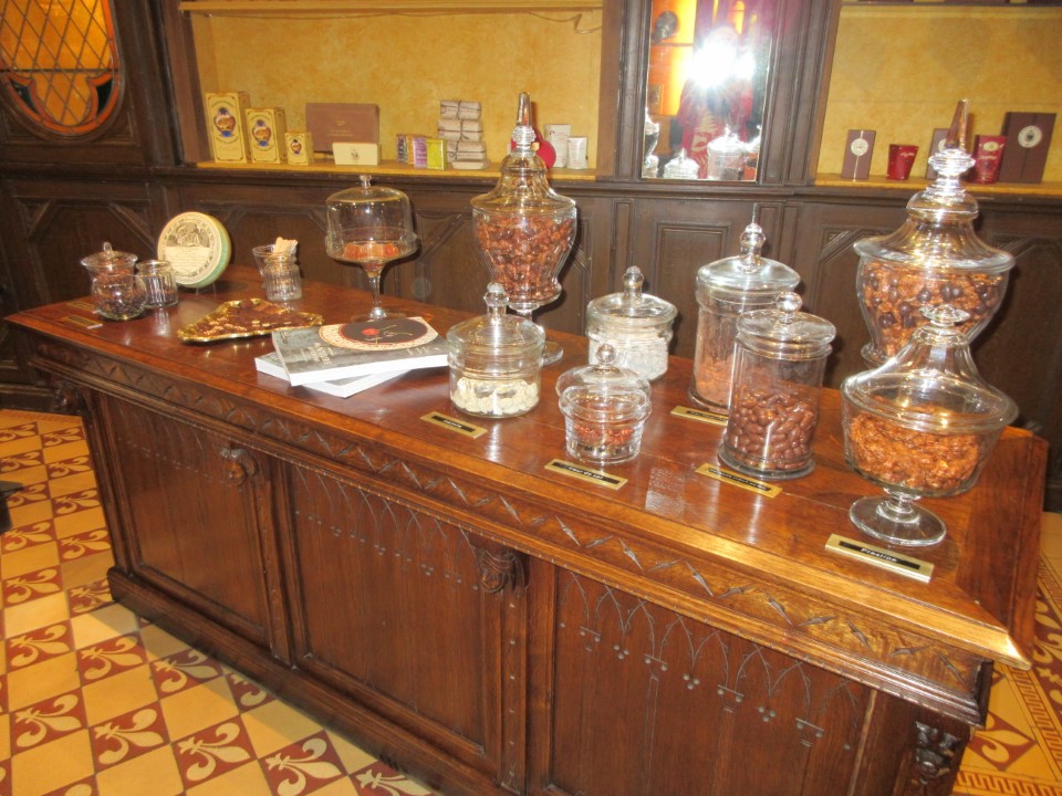| マゼは2店舗隣通しになってて、ファクトリーと販売だけのお店があるっぽい。ユーロ高もあるけど、なにしろ高い。ただ、試食が沢山あって、食べ放題。とはいえ、こんなに無造作に置いてていいのかと思うほど(笑)とりあえずお土産にいくつか買った。あと自分用のチョコレートなども。 |
