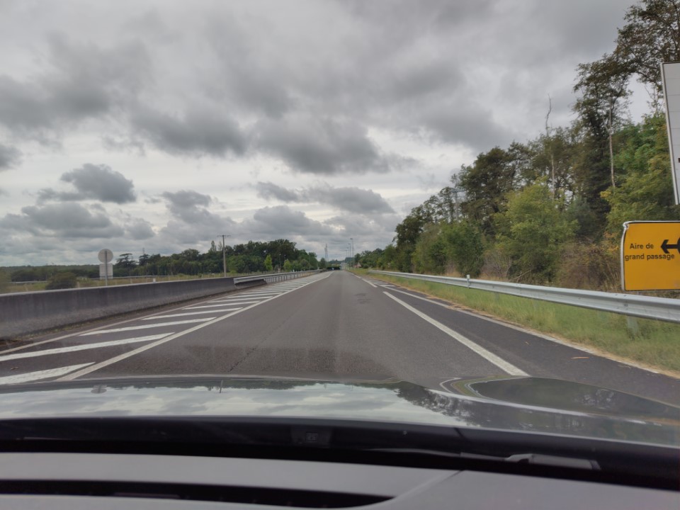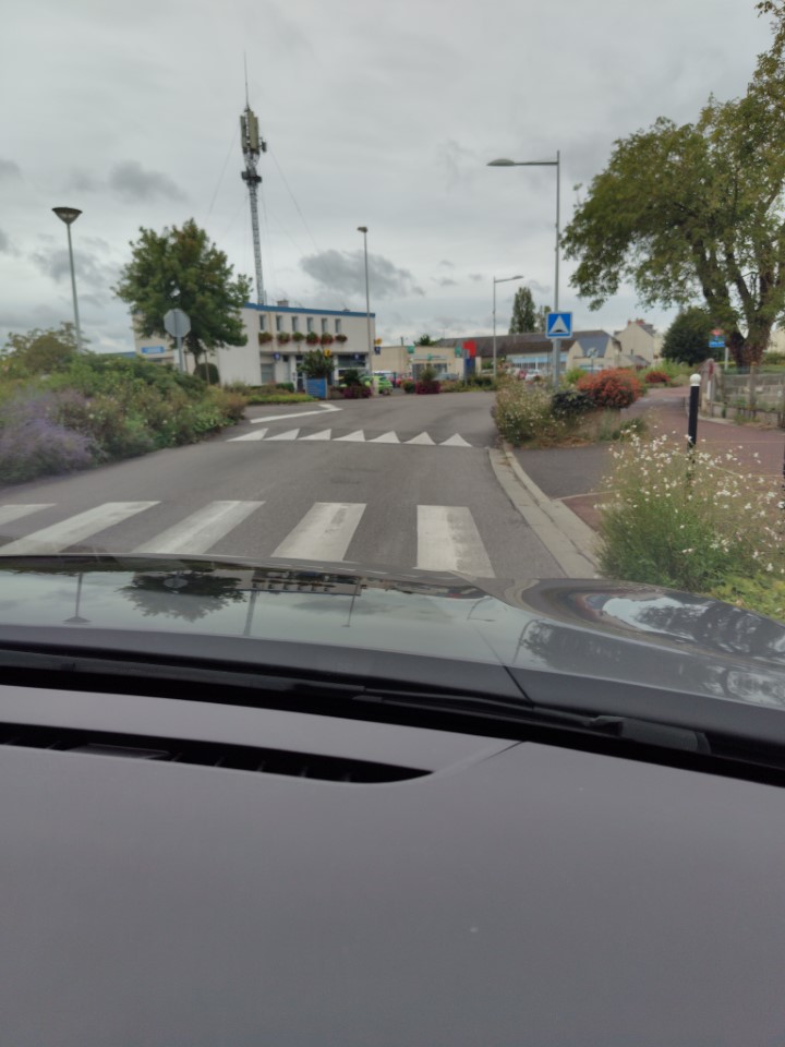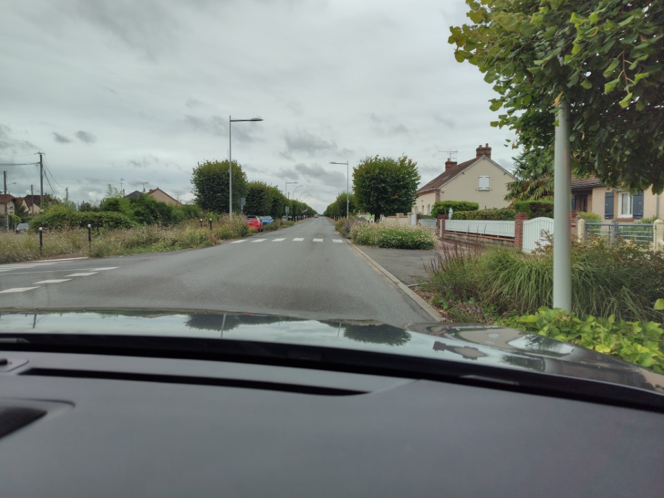 駐車場からだーりんが車をだすところ。このあと車が後退する時どんどん左に寄ってきてあぷなーい!と思ったら左のミラーを黄色い部分にぶつけた。けどキズはついてないようでよかった。そのあとも、このホテルの前の道をまっすぐ走って広いとおりにでたところで、すごく右に寄ってて、右の車のミラーにこちらの車のミラーが当たった!信号で止まったのでドアを開けて「desolee」と言ったら運転してたマダムが「Ce