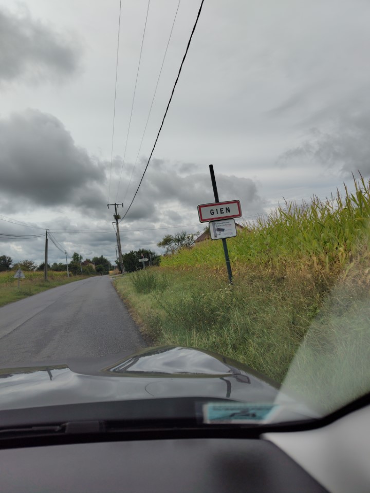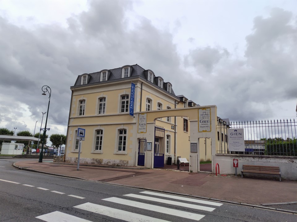 そして次の目的はジアン!このジアンについては、今から遡ること10年前、ブールジュで車を借りサンセールに行って、サンセールからオルレアンに行く途中の道が大雨で、時々雷も鳴ってる中1時間以上車を走らせた。それで、ちょうど右側にお城のような町がうすぼんやりと浮かび上がってきて、それがすごく幻影的だった。あとで、あれはどこの町だったのか、グーグルマップのストリートビューで調べて見たらジアン焼きの町Gianだった。またいつかオルレアンに再訪したいと思ってたので、その時にジアンも行こうと思ってた。それで今回シャブリからオルレアンに行く途中でジアンに寄ることにした。 |