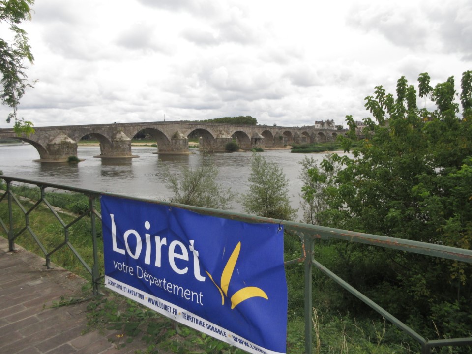 まずはジャンヌ・ダルク教会のすぐ横の駐車場に車を止めた。そういえば、今年は磁器婚式なのでジアンで何か記念品を買うというのも目的の1つ。とはいえ、ジアン焼きは実際のところ陶器で、磁器ではないから違うけど、その辺はまあよしとする(笑)ロワール川の反対側の景色が見えるけど、10年前に見た景色はあの反対側の道路からこっちを見た景色。 |