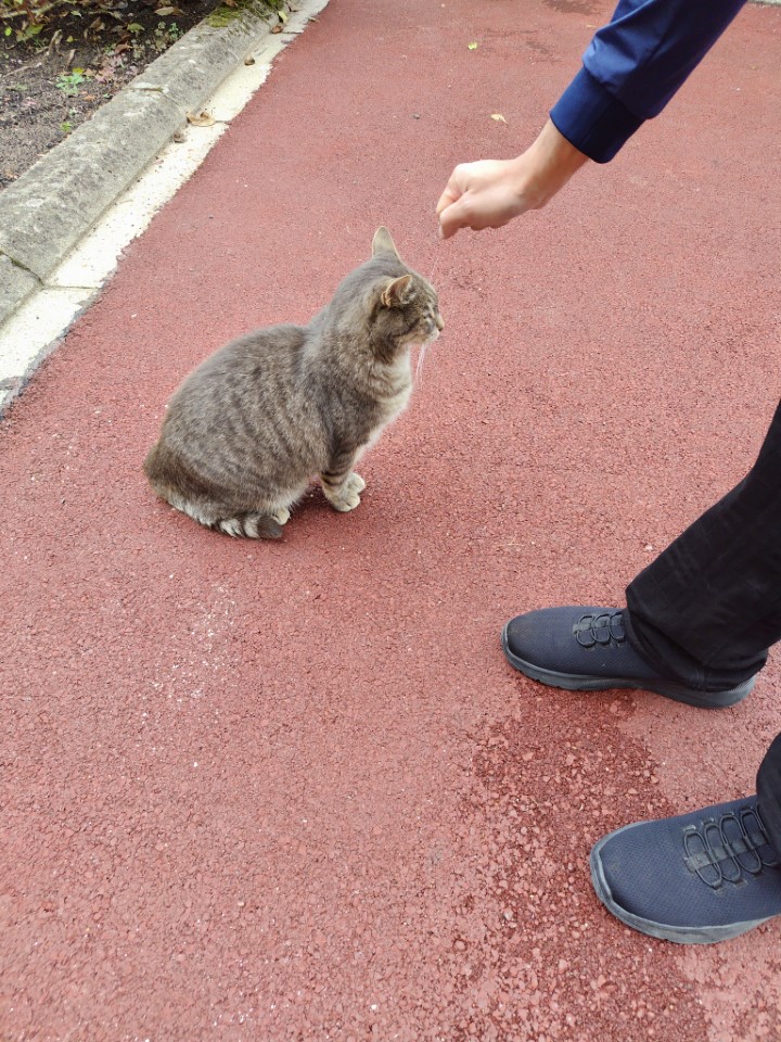 そして、少し離れたところに、ジアン焼きのミュージアムとアウトレットショップがあるので、車を移動させて近くの無料Pに駐める。入口に猫がいた!しばらく猫と戯れる。 |