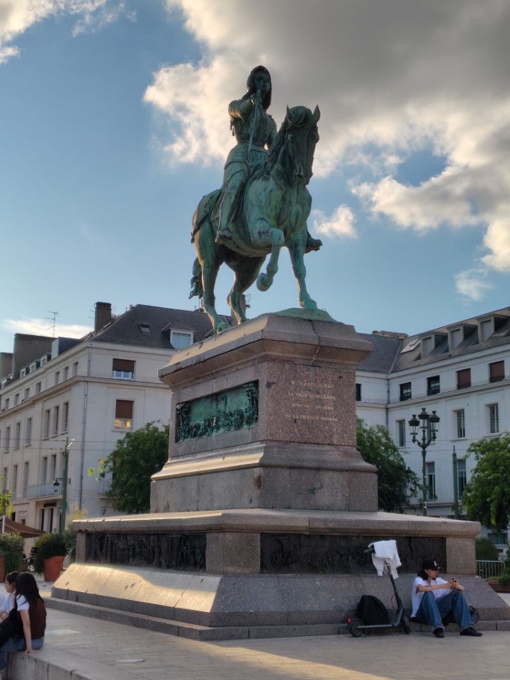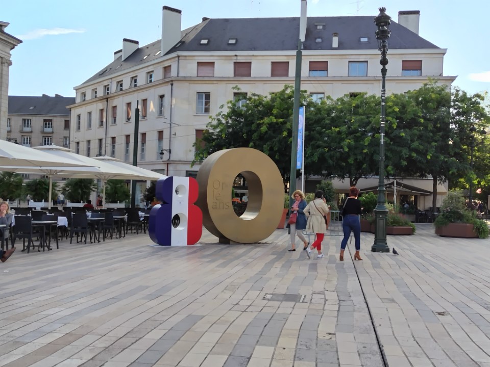 とりあえず、荷物を置いて町を散策。ホテルからすぐ近くのマルトロワ広場でジャンヌダルク像を撮る。ちなみにこの80の像は普段はOだけの彫刻で大きさは高さ約3メートル、重さは1トンというサイズ感で設計された記念碑的アート作品。制作者はオルレアンにゆかりあるアーティスト