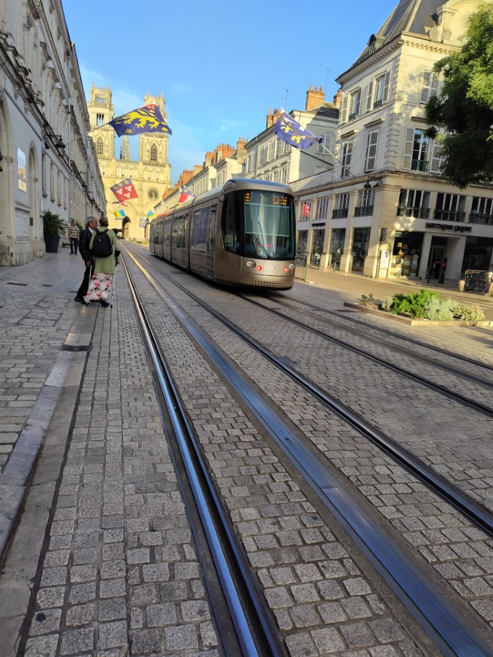 オルレアンのこのトラムの走ってる通りの正面に大聖堂が見えるというロケーションが好き。大聖堂はまた明日行くとして今日今からディナー。 |