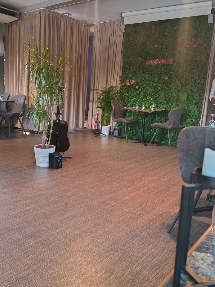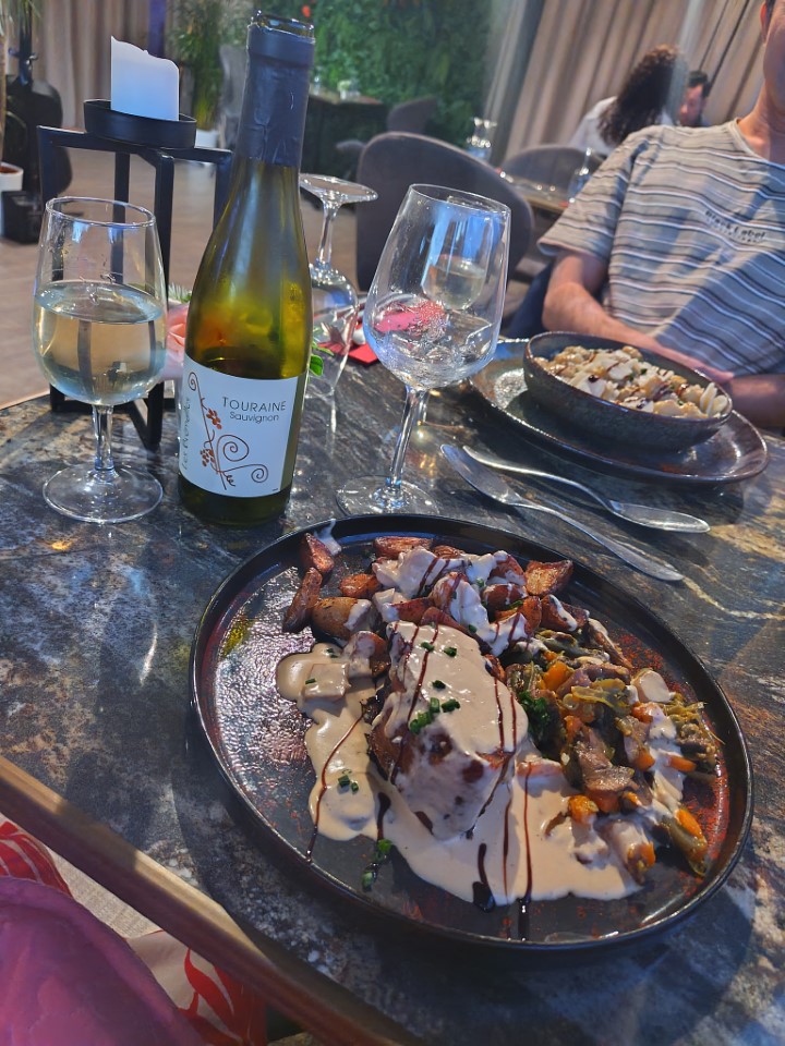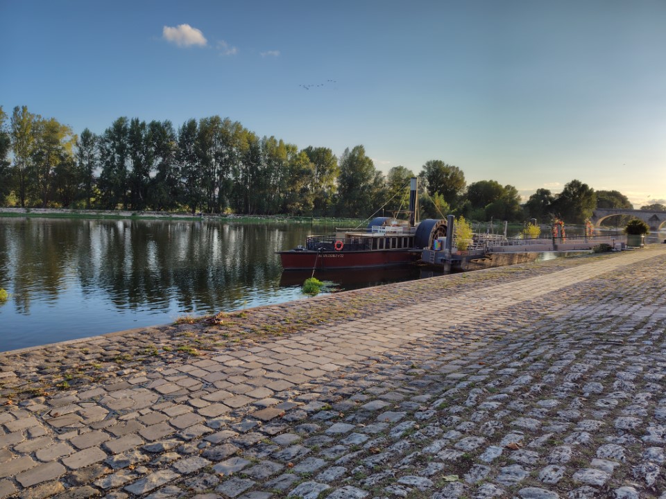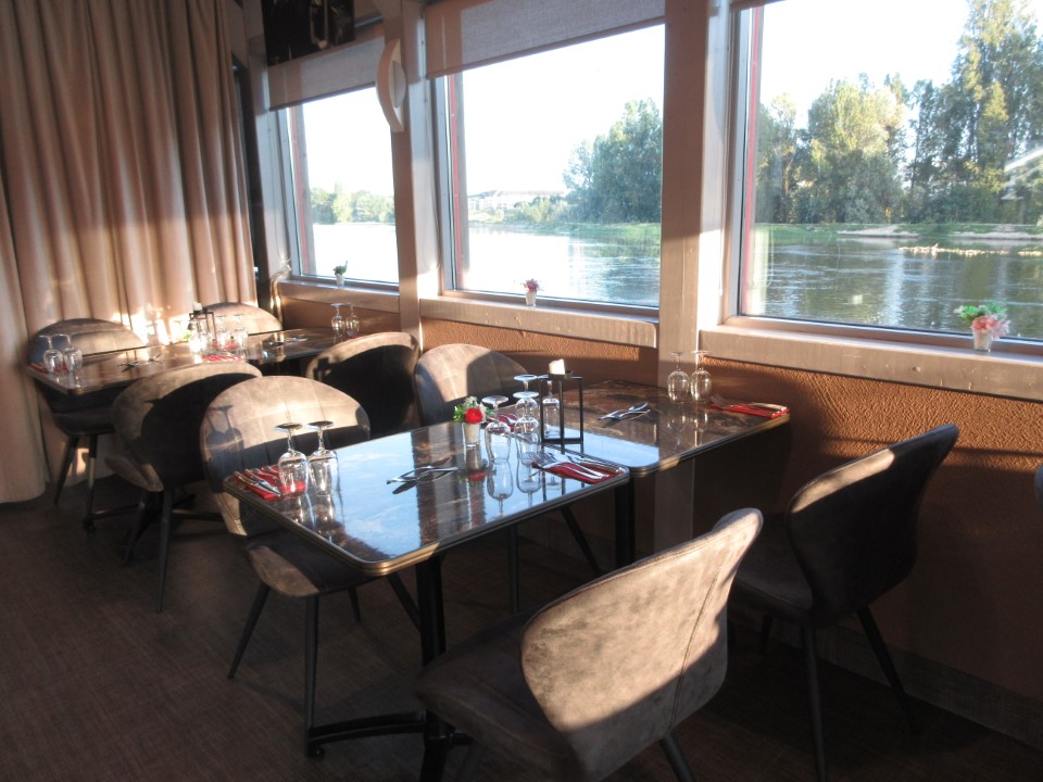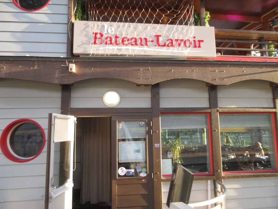 ロワール川沿いのレストランにした。名前は、パリのモンマルトルにある芸術家のアトリエ「バトー・ラヴォワール」に由来してて、レストラン、バー、イベントスペースになってるらしい。そういえば、人がいないので階段上がったら上で賑やかな演奏&パーティが開かれてた感じだった。 |