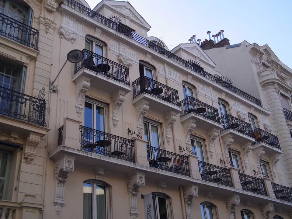 朝起きて、まずテラスから外を見てみる。お天気はよさそう!そして朝食を食べる。日本人の家族がいた。フランスではいつもパンが美味しい♪でも朝食の種類はちょっと少ないねー。あと南仏ではカフェなどでも、やたら虫が多い。8月ということもあると思うけど。そして予定通りにホテルを出発し、駅へ向かう。ホテルを外から見たときに私たちの部屋は一番上の、やっぱりテラスのある部屋のようだ。。下の部屋は全部バルコニーみたいだし。。。でも写真載ってたテラスある広い部屋もあるはず。。2部屋くらいしかなくて満室だったのかもしれない。と、外観をみてようやく納得することに(笑) |