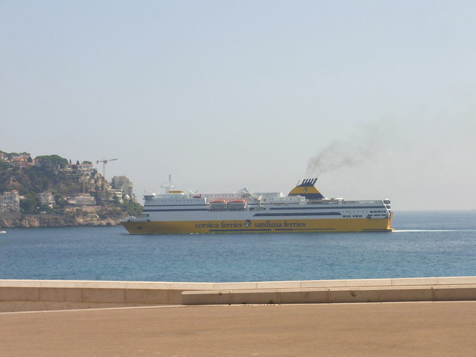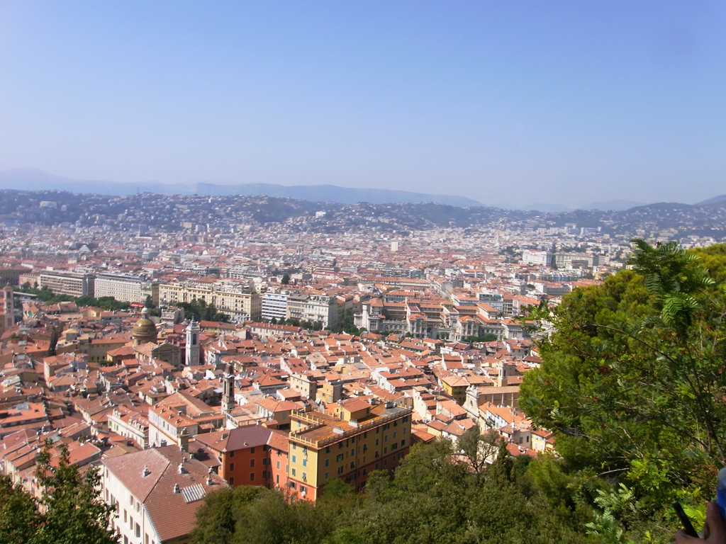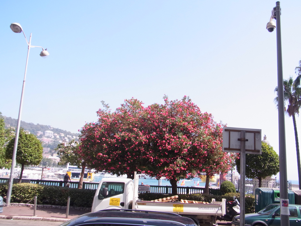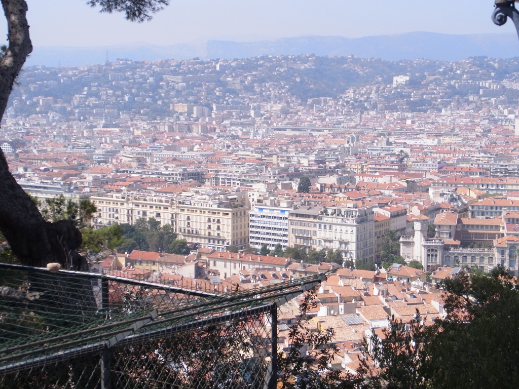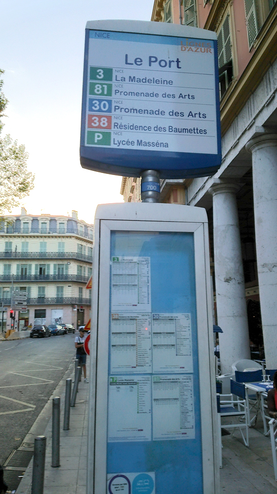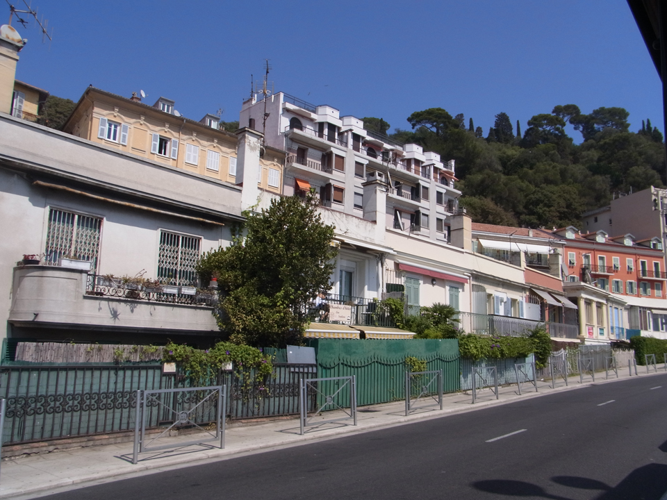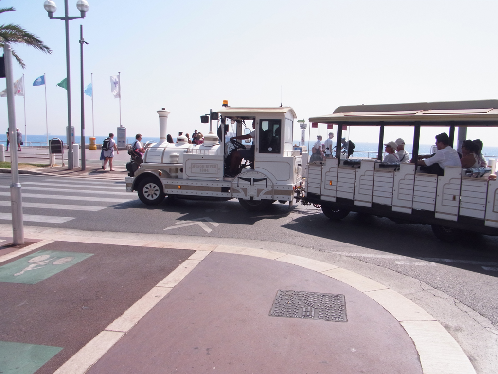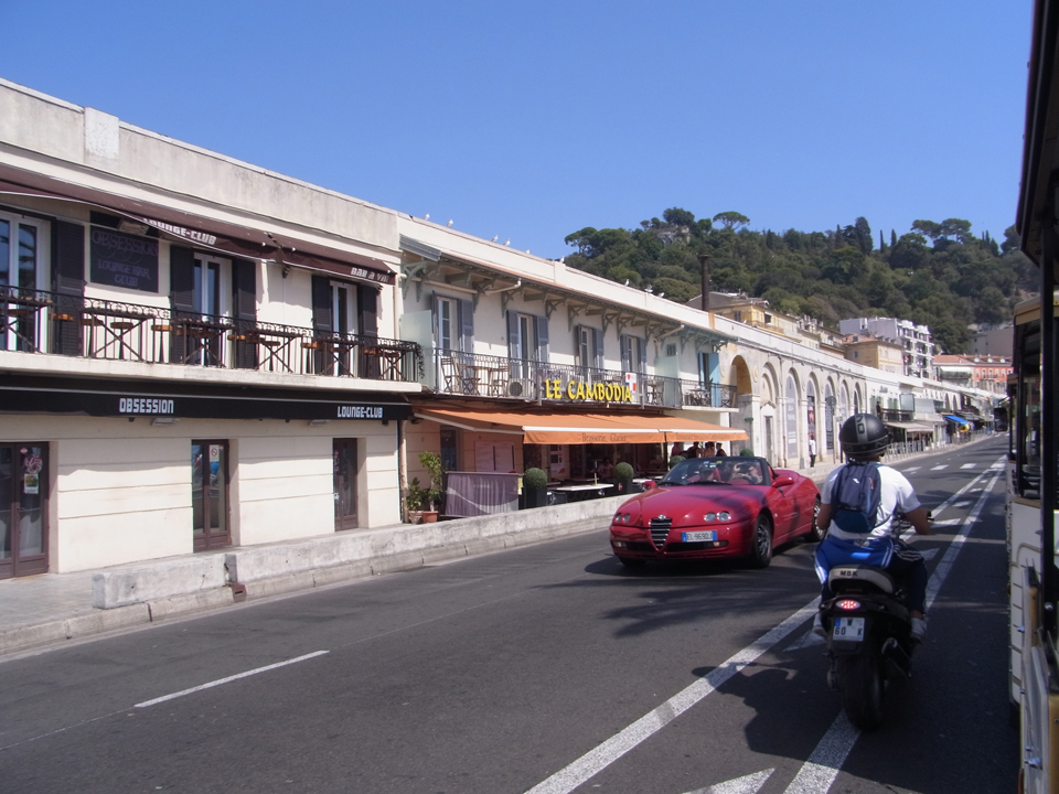 結局、マクドで買ったシェイクをプチトランに持ち込む(笑)そして、ここから旧市街を通って城跡のある丘の上へ。途中でマセナ広場なども通るし、港の方へも通る。ただ、その辺はまた戻ってきてからトラムに乗って行くことになるけど。。。ここからはしばらくニース港までの景色です。左の赤いバスはリビエラパスで無料で乗れます。 |
