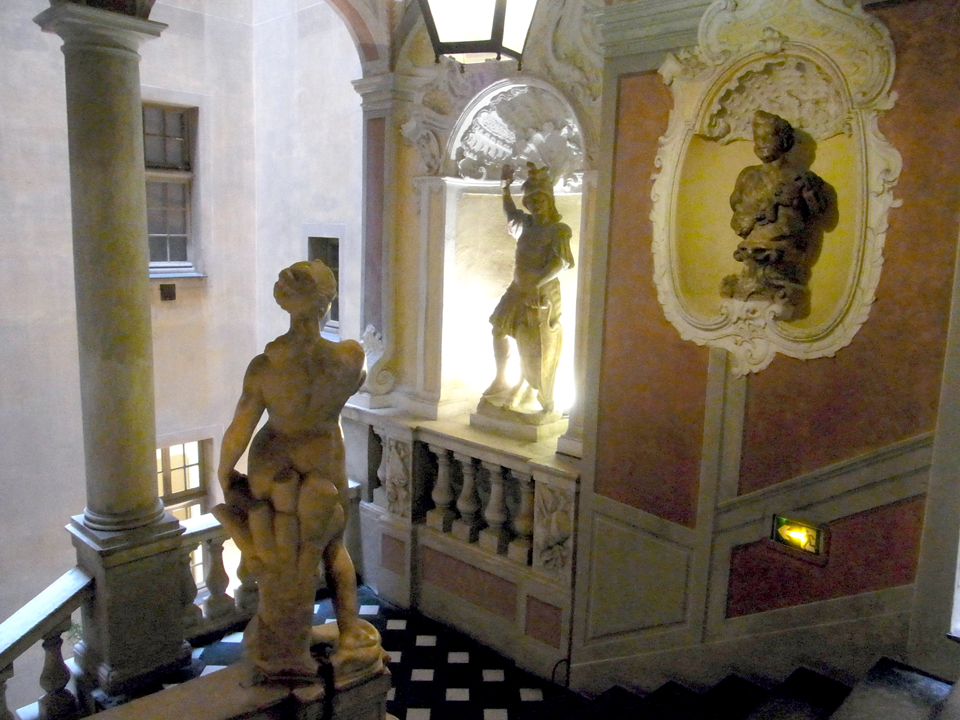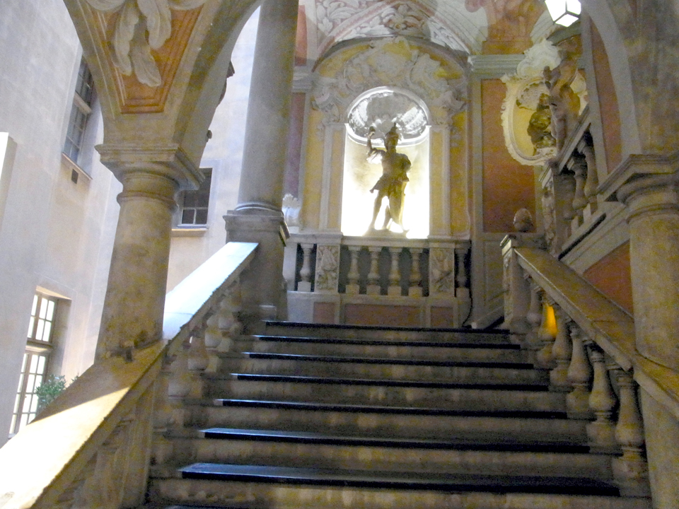 そして、左がマセナ広場。この噴水もどうやらアルベール1世らしい。毎年開催されるニースのカーニバルでは、ここがメイン会場となるそう。そして、次に行ったのがラスカリ宮。ニースの名門貴族の邸宅だったそうで、色んな楽器が展示してあって面白い。ただし、外観は普通のアパートみたいで宮殿という感じではない。 |