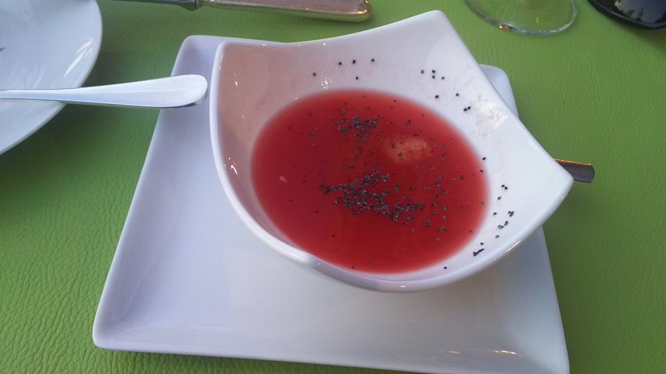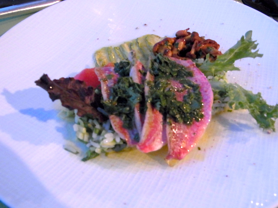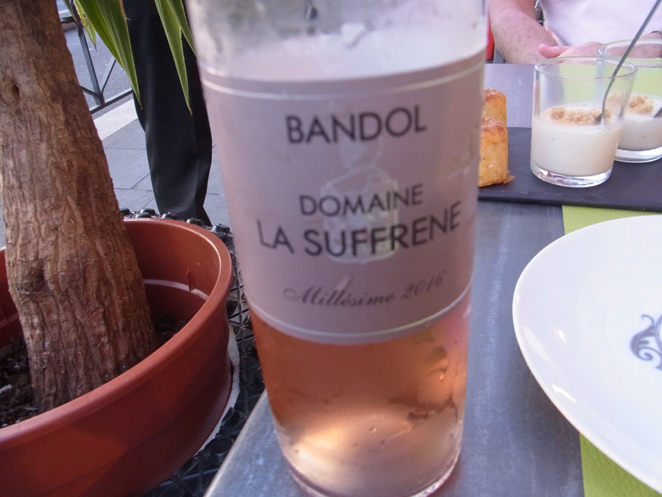 | ワインはバンドールのロゼにした。今回の旅行はボルドーに行くまでずっと南仏のワインで。ワインとよく合うニース料理でした。 |