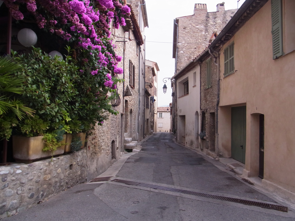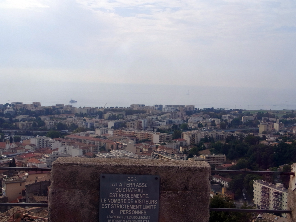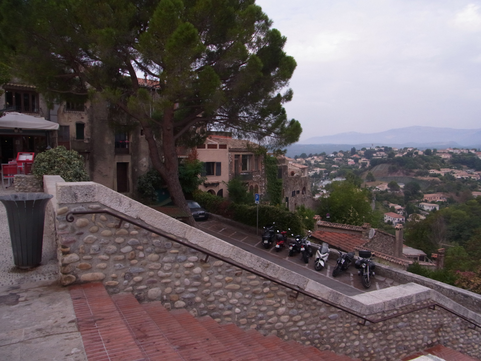 藤田嗣治、コクトー、デュフィの絵もある。グリマルディ城の滞在時間は約1時間。美術館を見たり、お土産やさんで絵はがき買ったり、景色を楽しんだりしてのんびり過ごす。見晴らしがとてもよくて、向こうに海が見えるのも、コートダジュールならでは。街並とか、ちょっとペルージュに似てる。中世の街並みってだいたいどこでもこんな感じになるね(笑) |