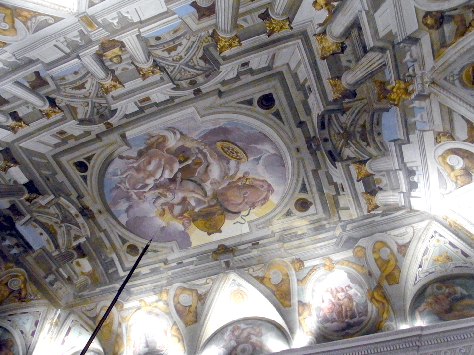 そしてこの運転手さんが、なんと大の日本好きで、空手をやってるらしく、何度か日本に来たことがあるらしい。日本語はほとんど話せないけど、柔道や剣道や、色々詳しくてとても面白い人だった。そしてグリマルディ城に到着。グリマルディ城ではバロック風のトロンプ・ルイユ(だまし絵)がすばらしいと本に書いてたけど、結局わからず(^^; |