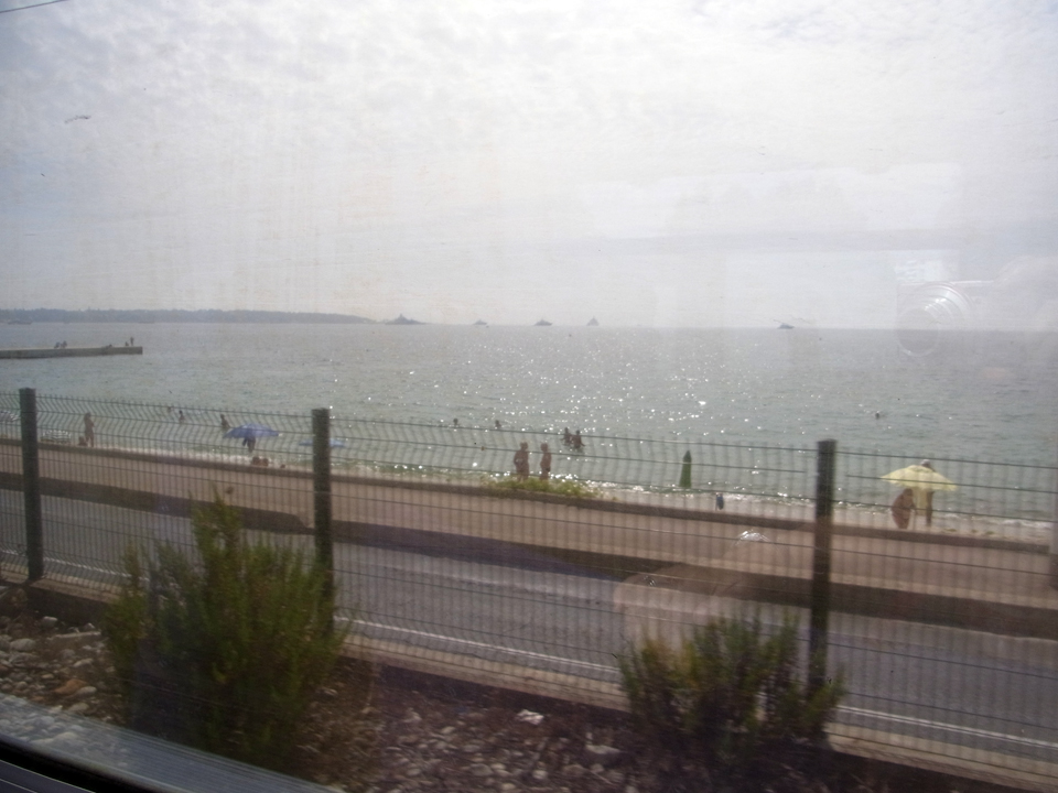 窓から海が見えます。18分くらいでカンヌに着きます。最初の目的はカンヌ映画祭のレッドカーペット。そして、広場周辺には色んな女優や俳優の手形がありますが、パっと見てわかるのはシャロンストーンくらいでした。そして、カンヌでの2つめの目的は大好きなFASの服が置いているお店に行くこと。駅と海岸の真ん中あたりにあるアンティーブ |