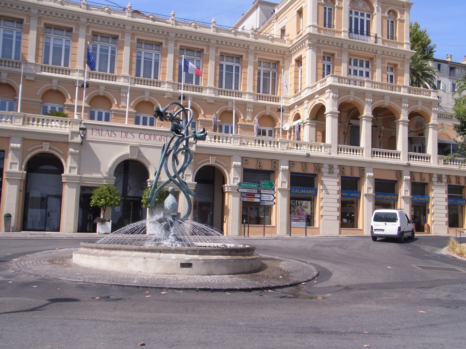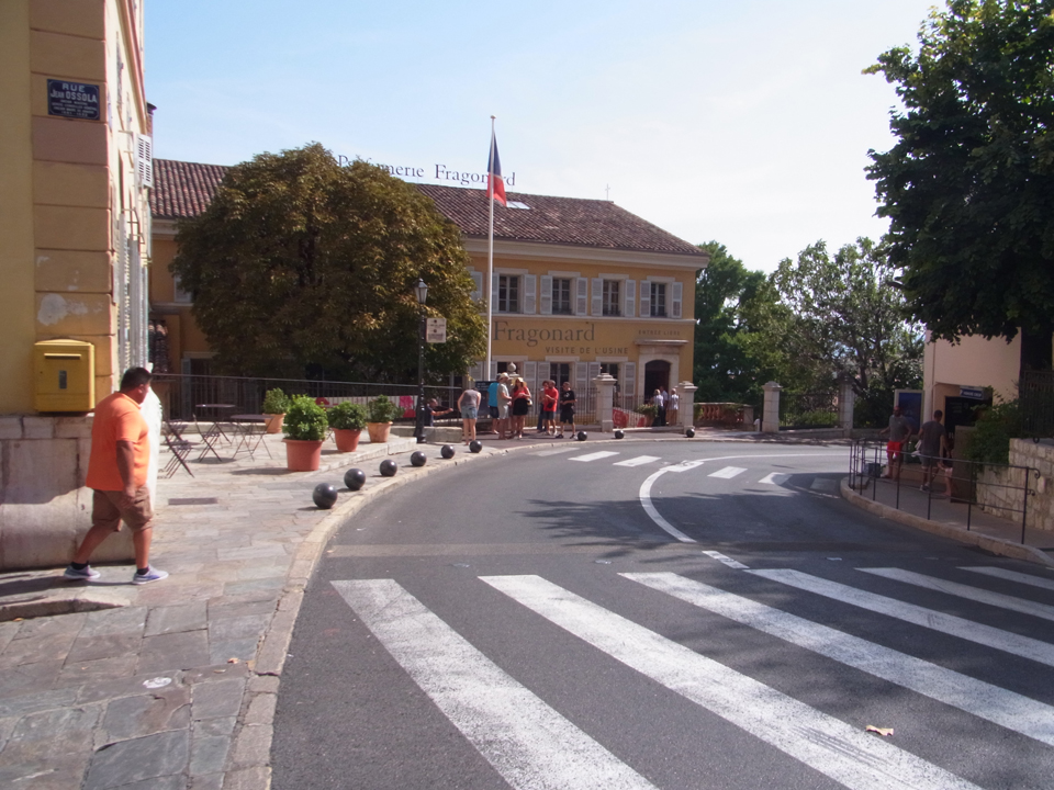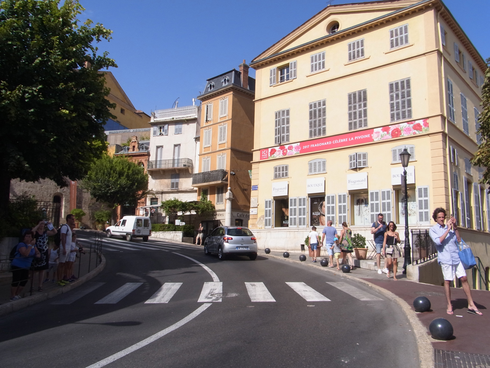 グラースは、フランスの香水の2/3が作られている町です。フラゴナール、ガリマール、モリナールが三大らしいけど、フラゴナールしか知らなかった。右がパレ・デ・コングレ前の広場。建物の1階に香水店があってのぞいてみた。この中に観光案内所もあったらしいが、帰ってきてから知った(笑)ちなみにこの前の道はナポレオン道路といって、 |