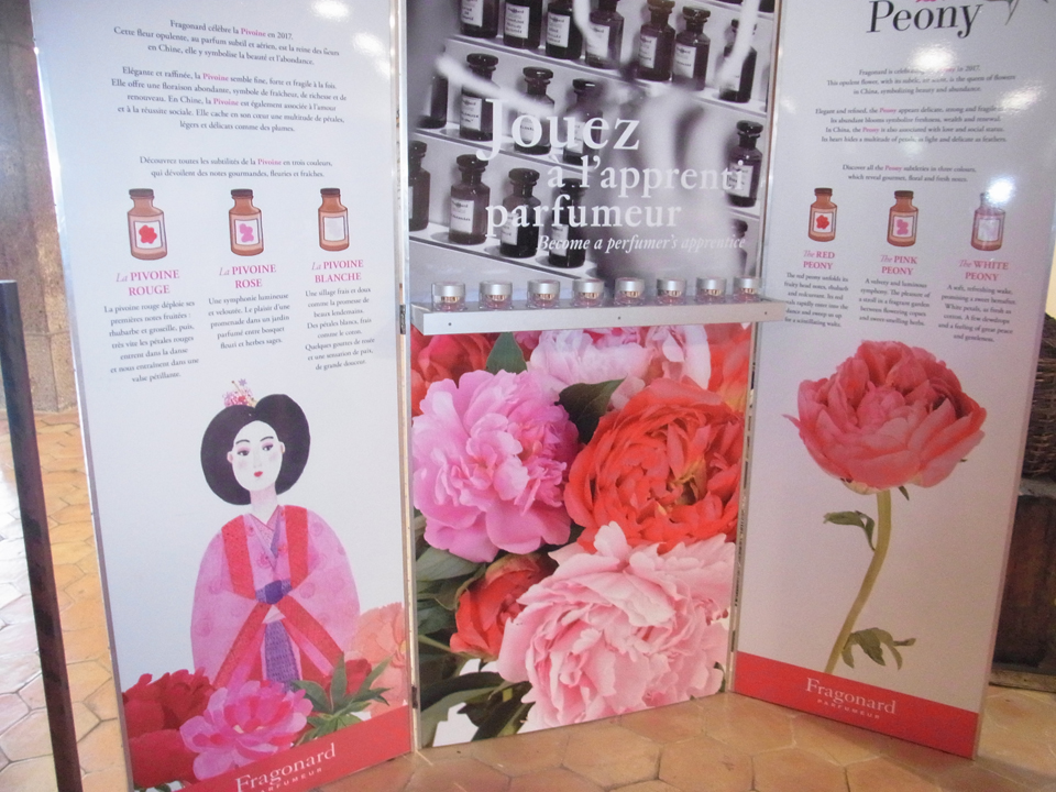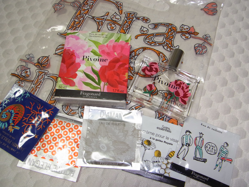 そして次はフラゴナールの香水歴史工場とブティック。この前の道はフラゴナール通りです。せっかく来たので何か香水をと色々試したけど、今年の新作・牡丹の香水が一番よかったのでこれを購入。中はお客さんで賑わっていました。おまけに入っていたお手ふきのような香水シートはフラゴナールの色んな香りのもの。5枚も入ってた(*^^*) |