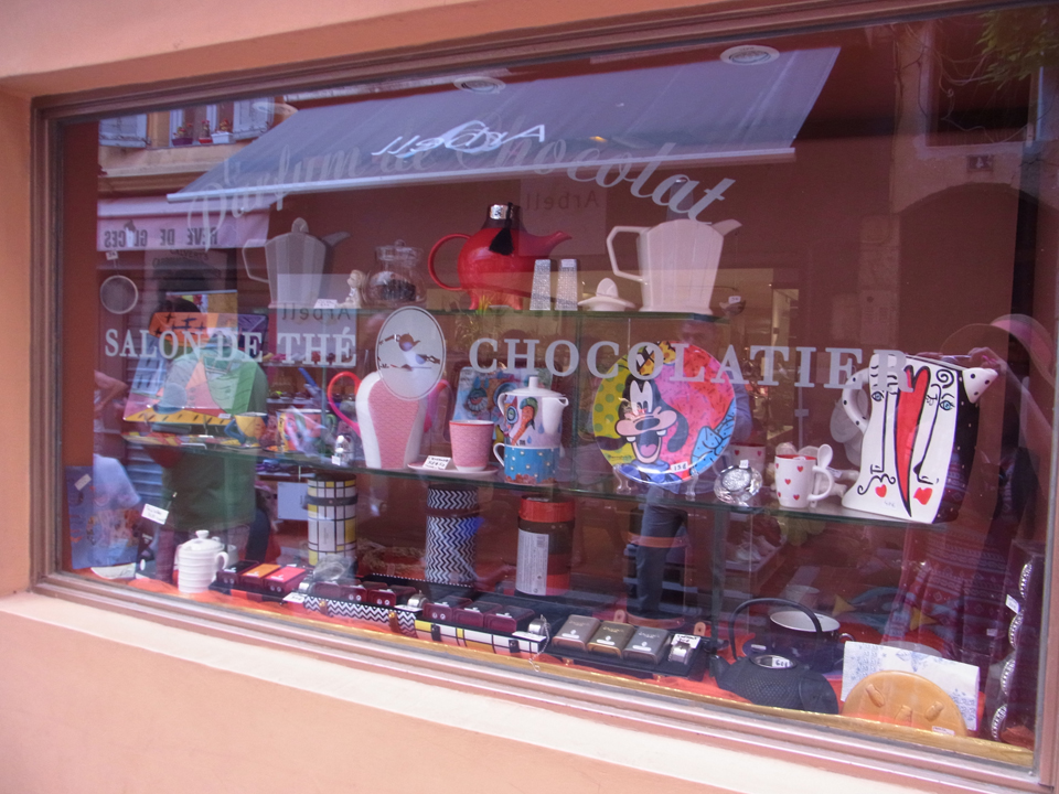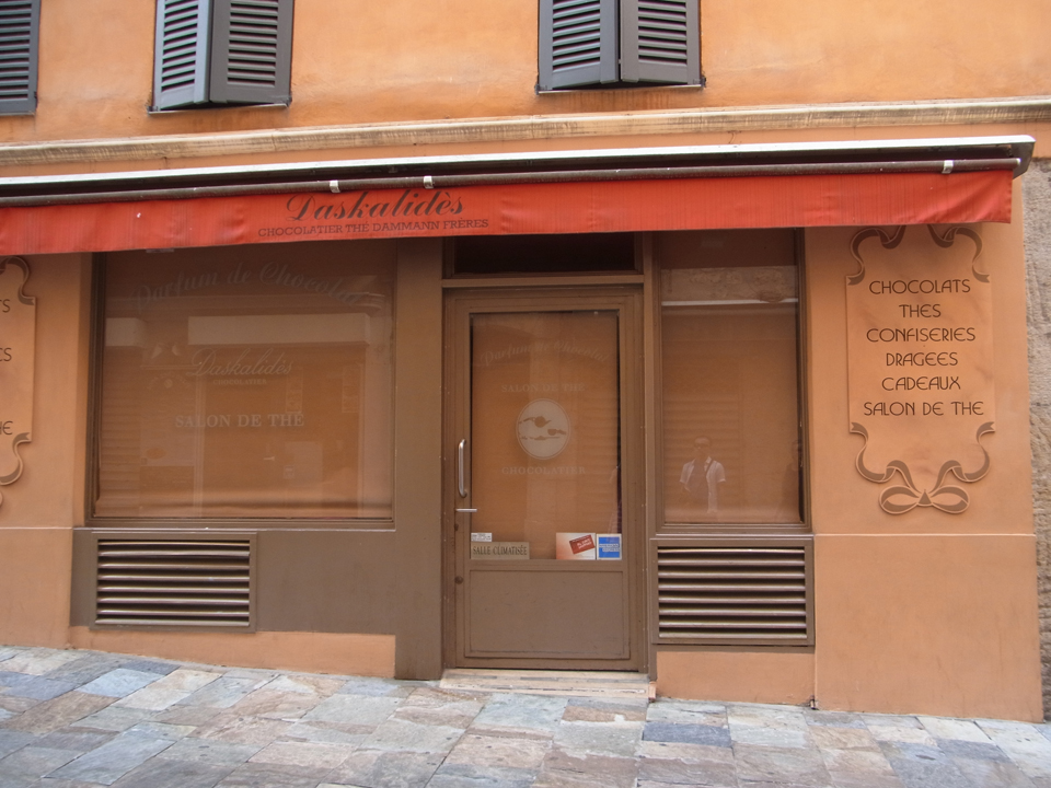そして、グラースにきたらこのparfum de chocolatでお茶を飲んでお土産を買おうと思っていたけど、なんと閉まっている。たぶんバカンス。もうがっくり。。。実は、グラース名物のフガセットの有名なお店にも行く予定だったのに、事前調査でその店はお休みということがわかっていたので、このチョコレート・カフェの休みは痛い。 |