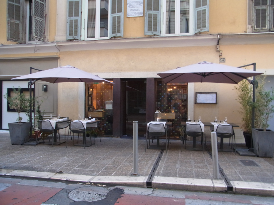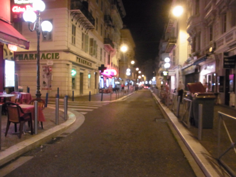 デザートかチーズかでチーズにしたけど、お腹いっぱいで食べれず、おじーちゃんに言うとアルミホイルに包んでくれてお持ち帰りした。せっかくのチーズなのでよかった。おじーちゃんに原宿のお店でシェフと撮った写真を見せたら、彼は今頃イタリアでのんびりしてるよーと言っていた(笑)平日なのに夜のニースは結構人が多い。 |