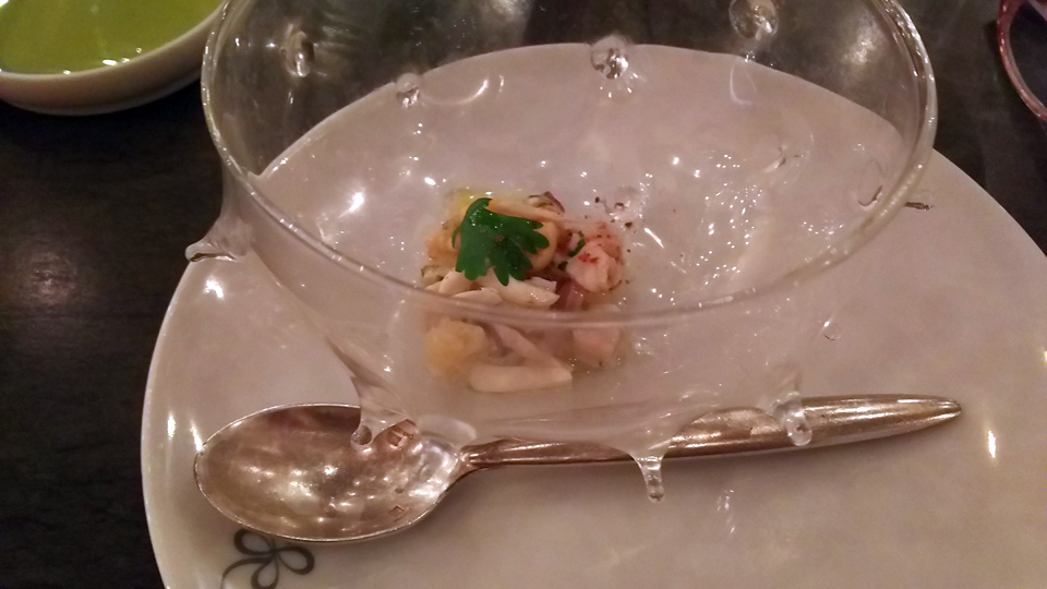 ここがケイスケマツシマ。ニースに本店があり、原宿にもお店がある。たまたま、ここを予約したあとにアテネフランセのワイン講座が東京のレストランであり、シェフに会ったので予約したことを伝えたら、シェフはバカンスで本店にいないらしい(笑)おじーちゃん風な人と若い男の子が2人でフロアを切り盛りしていた。飴でコーティングしてあるトマトは、トマトが全く食べれない私が食べれた(笑)ワインは南仏のハーフボトルを1本飲んだ。アミューズがすごく美味しかった。あとフォアグラも♪ただ、今までどんなにすごいレストランでもフランスで食べる魚は、美味し〜いと思えるものがない。たぶん素材の問題だと思うけど。 |
