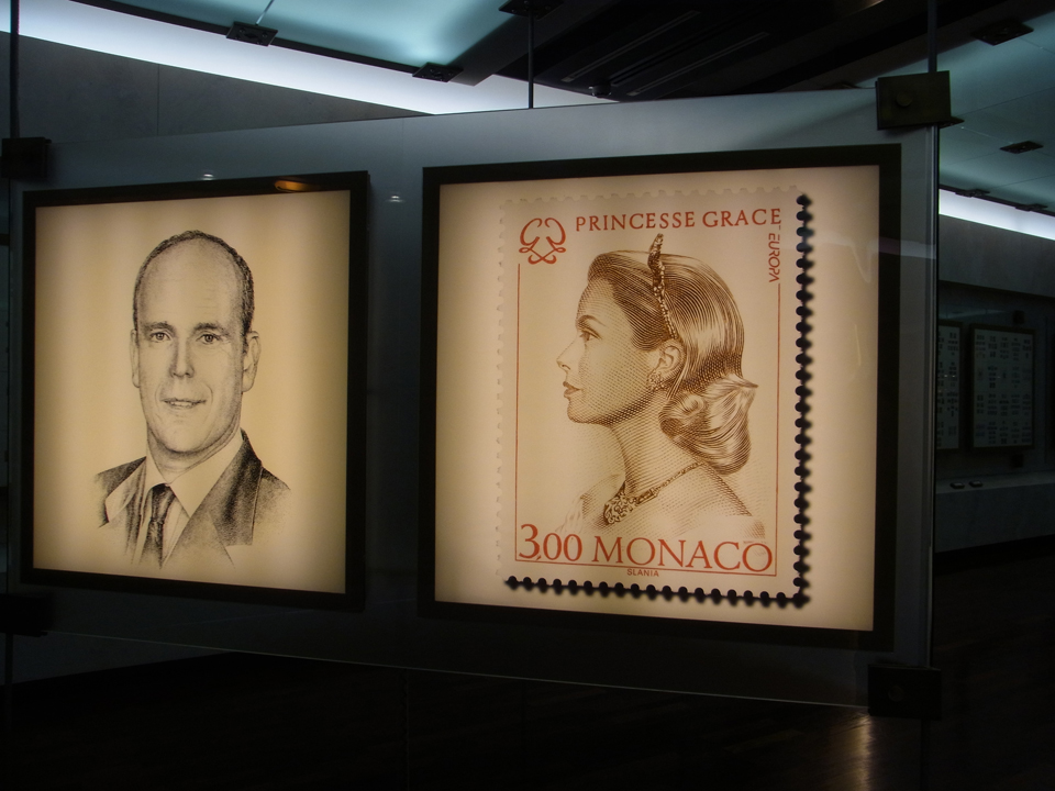 切手とコインの博物館では、レニエ3世のコレクションなど、さまざまな展示がある。切手とかコインとか見るの楽しい。お土産にグレース公妃の切手のついた封筒を買った。そして、お釣りをよく見たらなんと珍しいモナコユーロだった!入場料は1人3€。 |