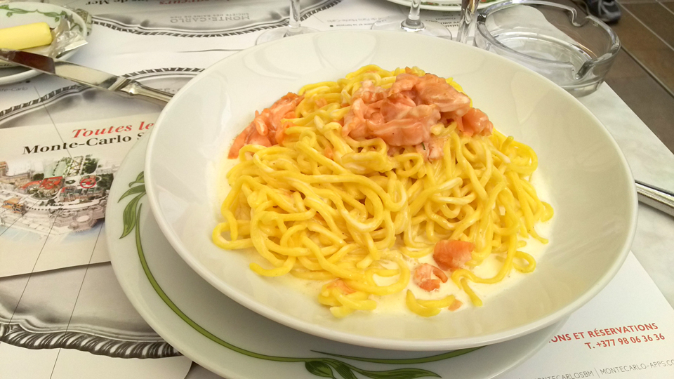 観光案内所に行き、地図をもらってハーツの場所を確認しておいた。そして、カジノ広場にあるカフェ・ド・パリでランチタイム。エクサンプロバンスのワイン珍しい!!そしてサラダもパスタも量が多すぎ(笑)あと、ブランドの紙袋を沢山持った人がちらほらいたのもモナコならでは。パリだと一瞬でひったくられそう。ランチは67€ |