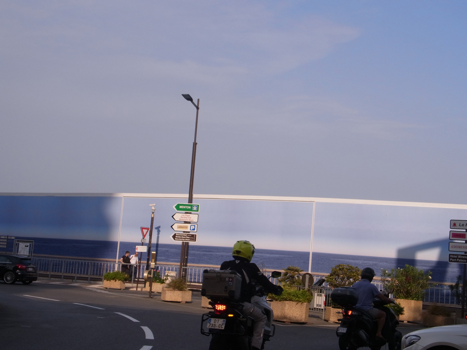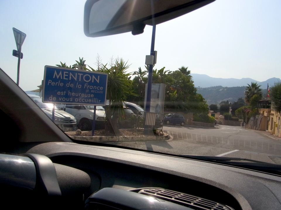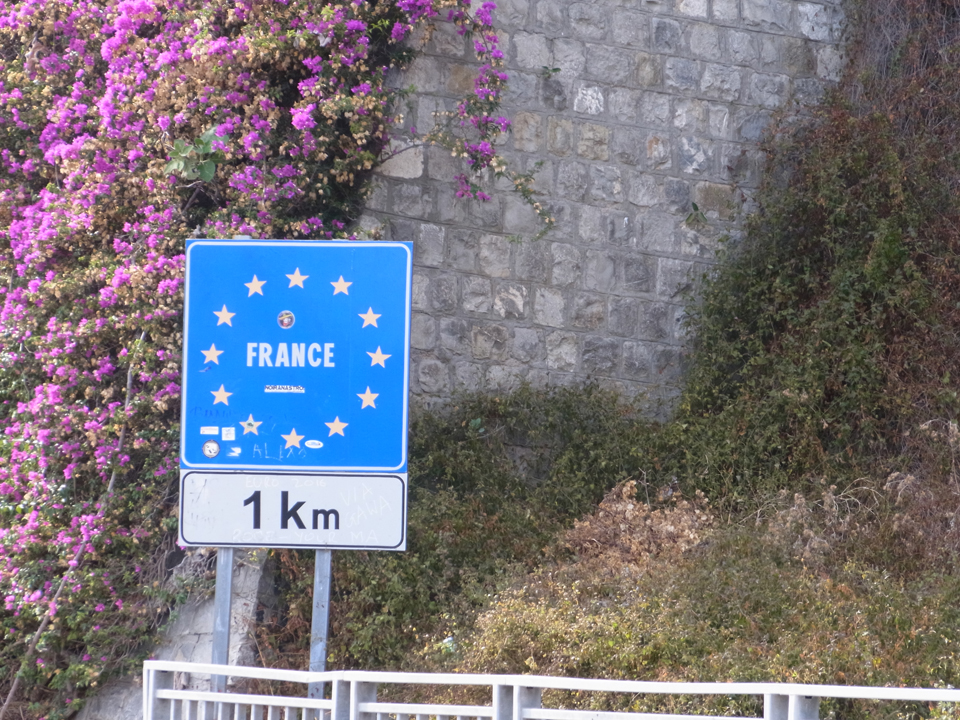 | マントン行った時にここに泊まろう(笑)右上のフランスの看板、イタリア側にはFRANCIAとイタリア語になっていたのでそれを撮りたかった。 |