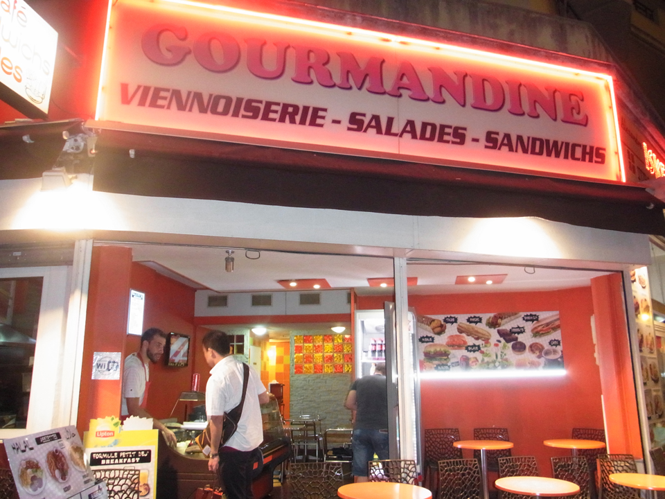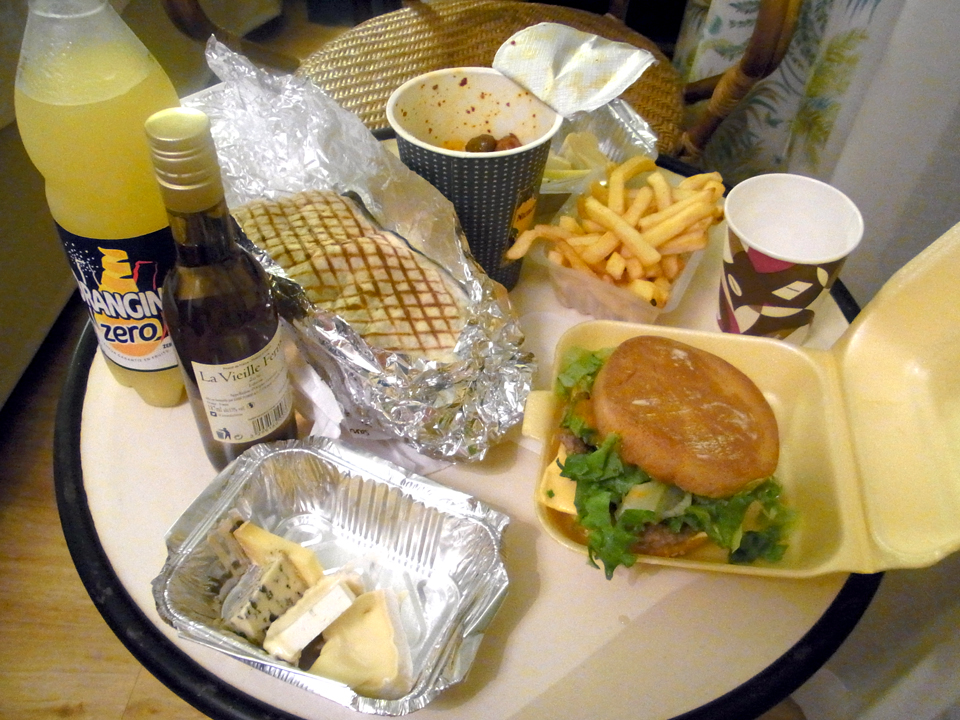 上の右上の写真、教会の左の道を入っていくと駅に行ける。不安だったので教会のそばにいた学生風の女の子に道を聞いてみた。そして、ニースの駅まで戻ってきた。今日は唯一レストランを予約していなかった。ニースの駅前で適当に食べようと思っていたが、昨日のチーズや、一昨日のオリーブなど次の町には持って行けないし、お昼の量が多かったのもあって、近くのハンバーガーやさんみたいなところで、買ってホテルに持ち帰った。意外と美味しかったのと、写真にもちらっと写ってるにーちゃんが、気さくでいい人で、バカンスで来てるの?とか色々聞かれてちょっと話をした。さらに、ワインが飲みたかっ |