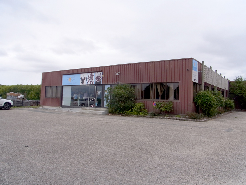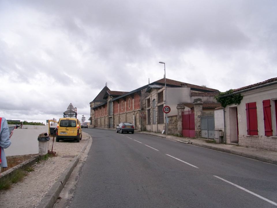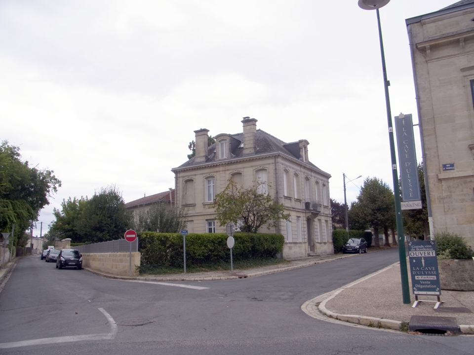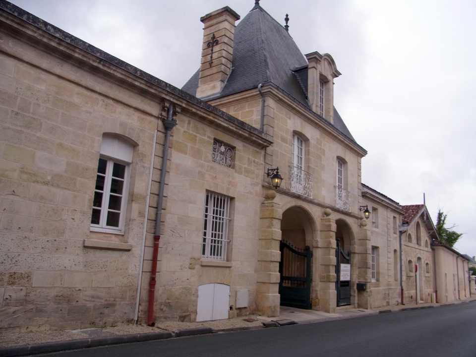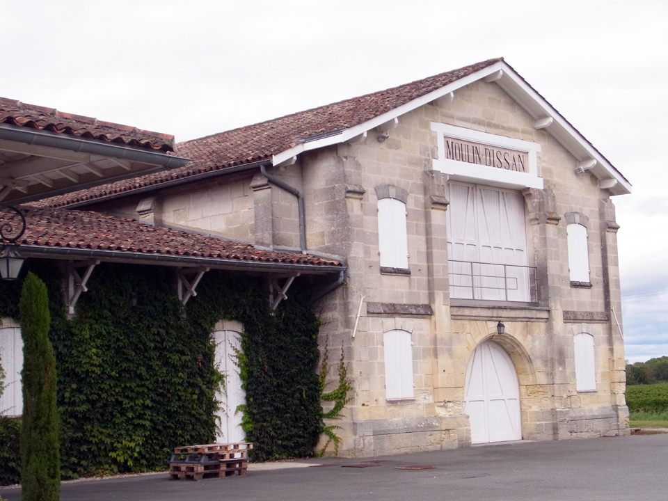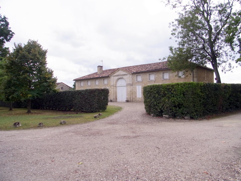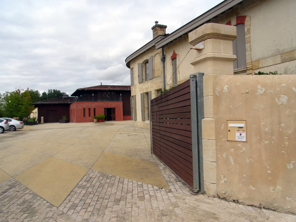 何年か前にモトックスの試飲会で社員の人が来ていて、2年後ボルドーに行くと行ったら名刺をくれた。それで今回コンタクトを取ってみたけど、その人はバカンスでお休みらしい。見学はできるよーと言われたけど、1日に3軒も訪問するのは大変なので、建物だけ写真を取りに行くことにした。夕方なので誰もいなくて、勝手に入っていって |