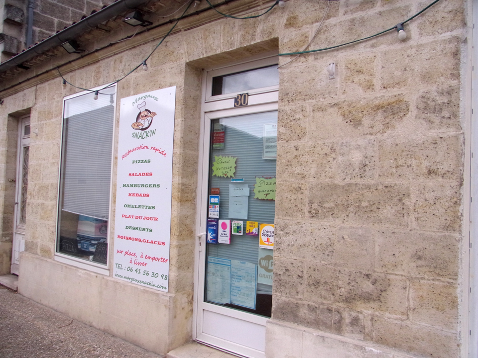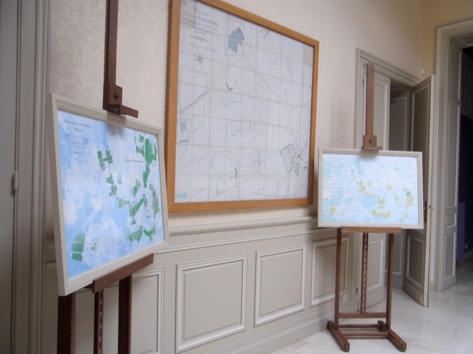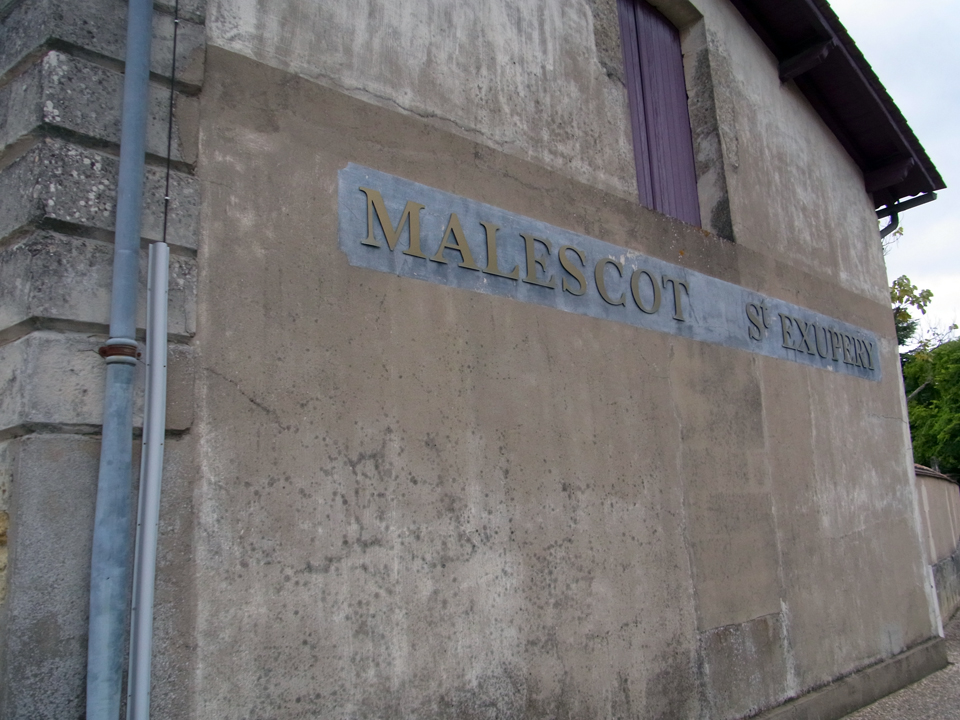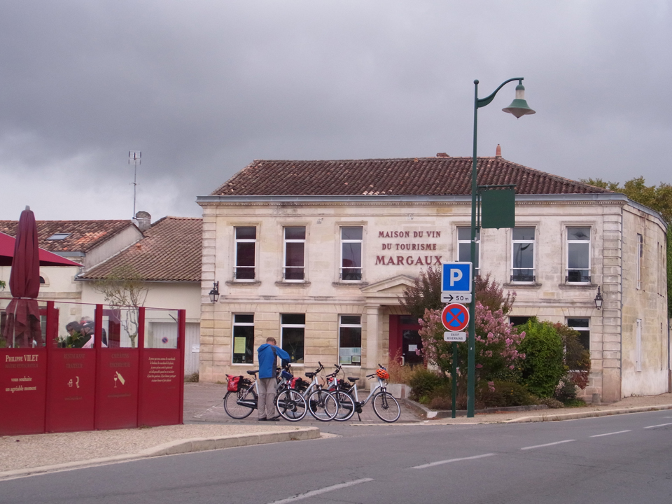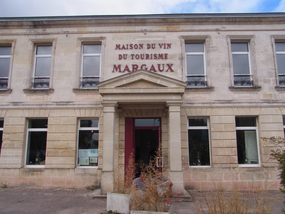 そして右上はフランスの可愛い市役所。マルゴーの看板にはあとで行くチョコレート屋さんや、さっきカヌレ買ったパンやさんも載ってる。下の写真はワイン専門店、右下はシャトー・マレスコ・サンテグジュペリ。そしていったんホテルに戻って、車でシャトーマルゴーへ。下の写真はどうやらワインショップのようだったけど、入らなかった気がする。 |