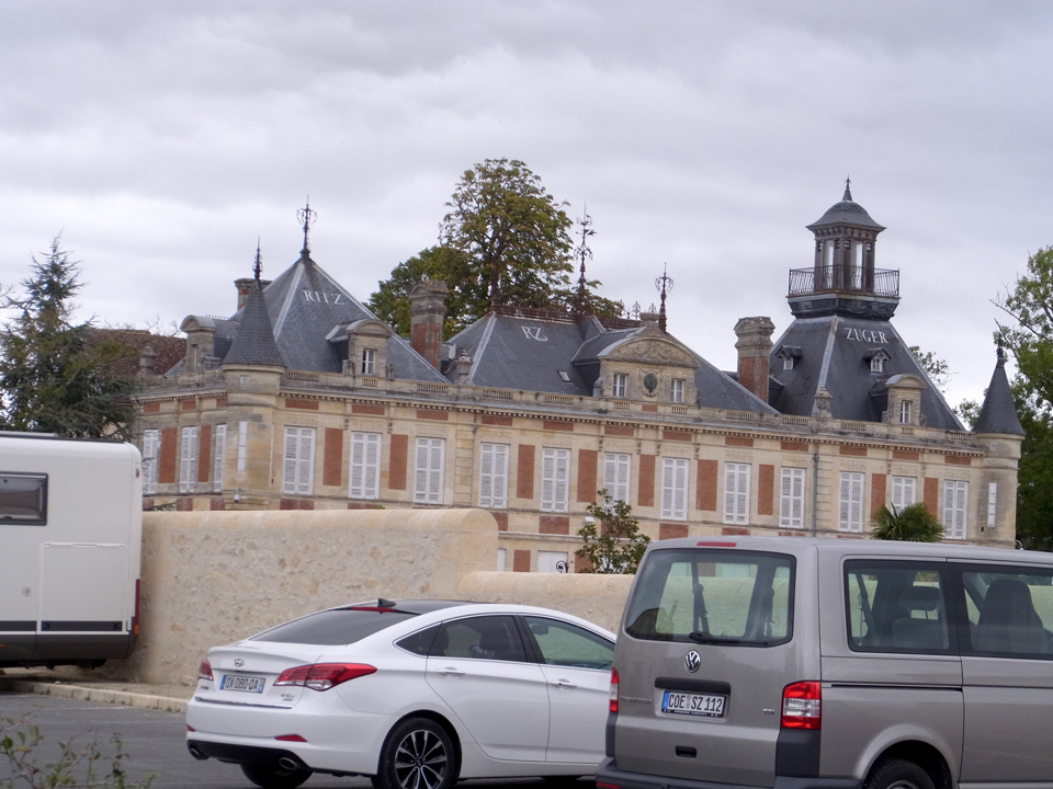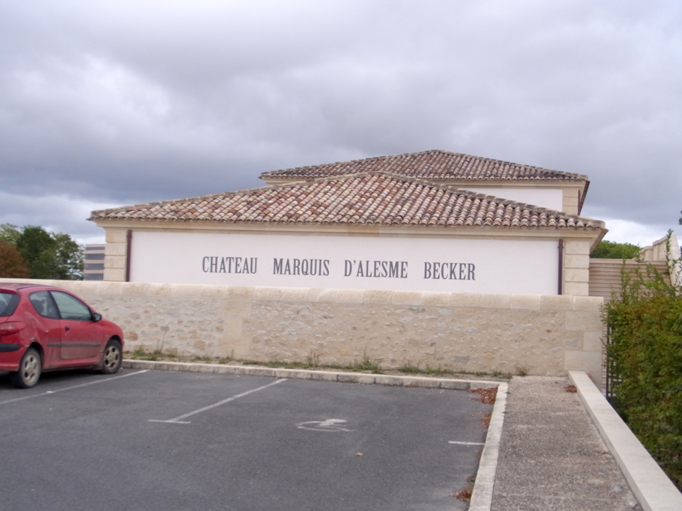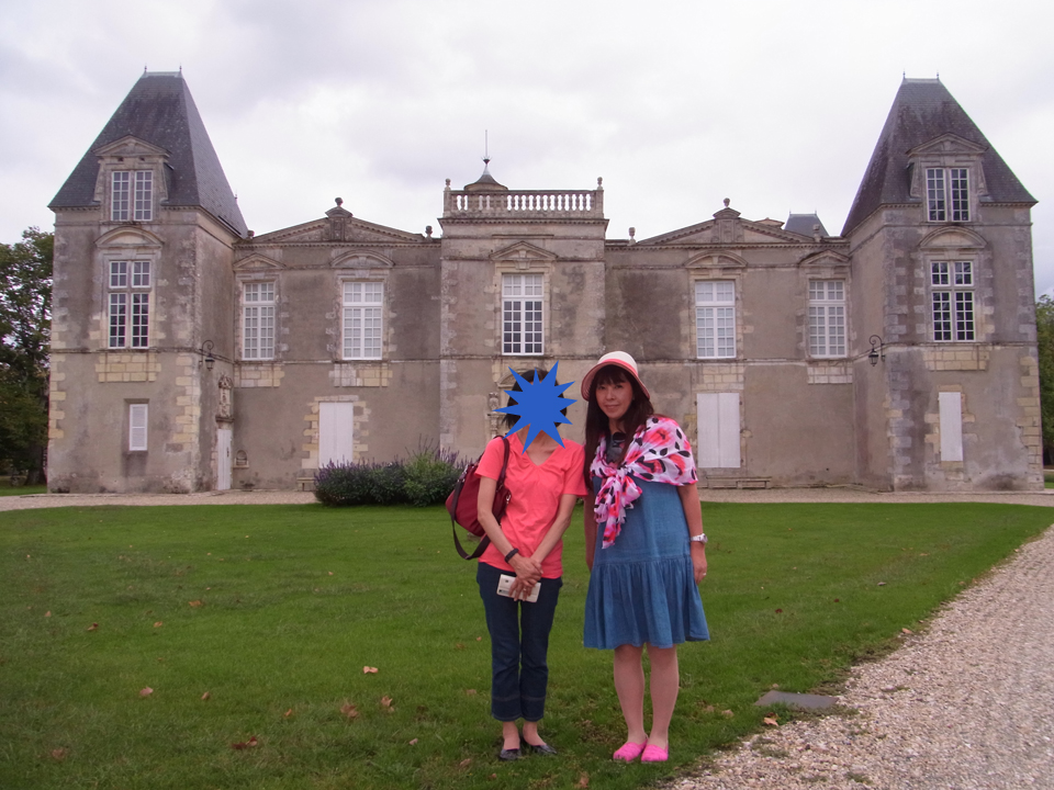 ホームには高校生のような女の子が数人でワイワイしていたが、無人のホームにいてる3人の日本人を不思議に思ってるかも(笑)そして、結構時間通りに電車がやってきて、Yさんはボルドーに帰って行った。次はまた明後日にジョインします。そして、マルゴーのことを調べてた時にから気になってたシャトー・マルキダレームベッカーのお城へ。 |