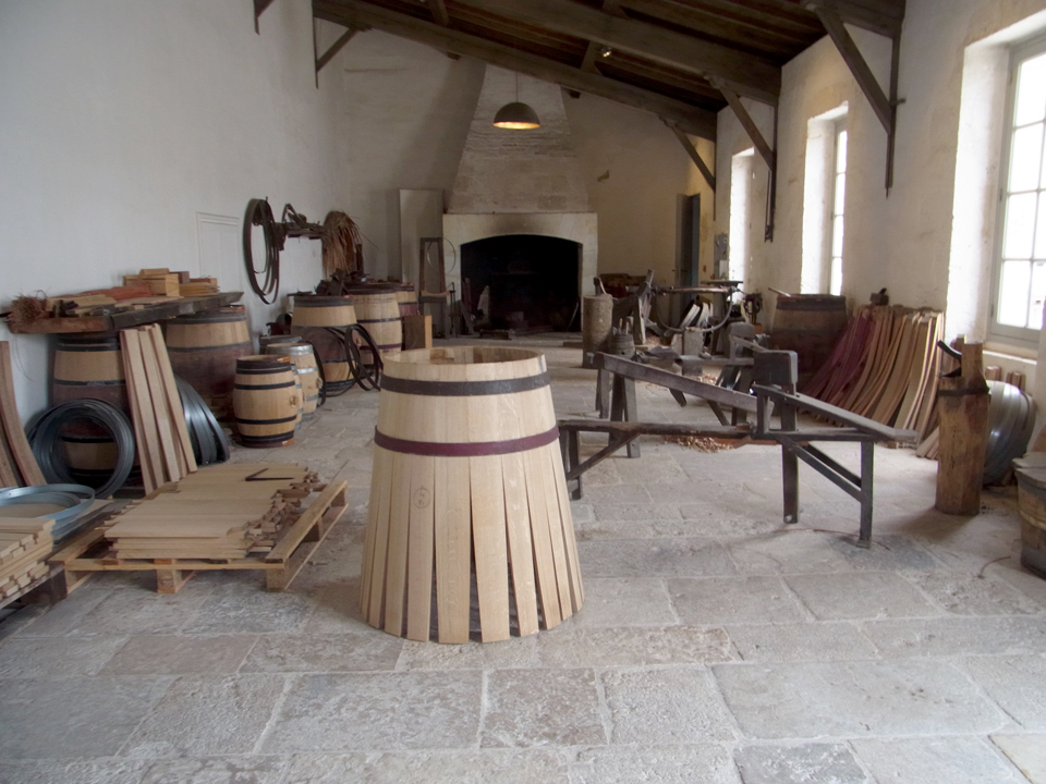 ここがシャトーマルゴーの受付。予約をしてあるので名前を言ってしばらく待つ。意外なことにツアー見学者は私たち3人だけ。フランス語を選んだからかな?若いスタッフの女の子が案内してくれて、樽を作る作業のところなども見学。そしていよいよ試飲!