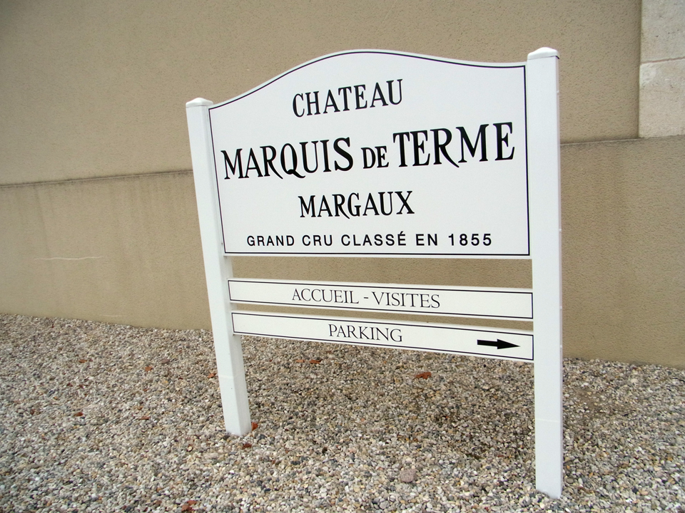 シャトー・ディッサンを満喫したので、ホテルの方へ戻り、シャトー・パルメで写真を撮る。パルメのシャトーも可愛い。ブドウがなってた。カベルネ・ソーヴィニヨンかな。そして、次はマルキ・ド・テルムの前に。中に少し入ってみて写真も撮った! |