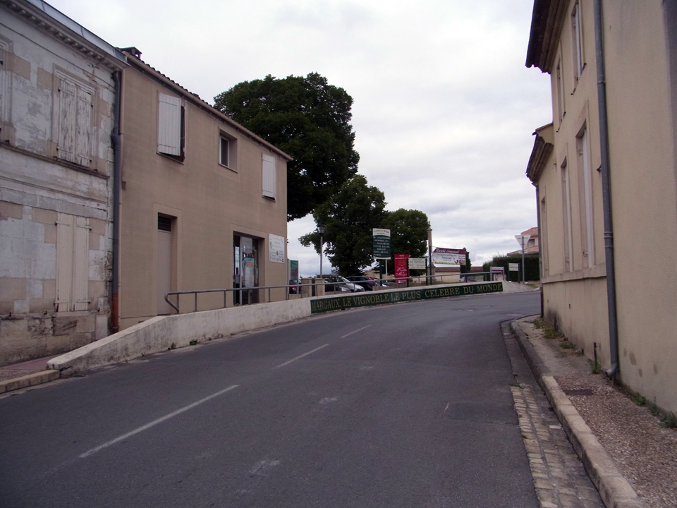 | ハーツの駐車場から見える景色。あの大聖堂はサクレ・クール・サンジャン。そして、この橋はジャック・シャバン・デルマ橋。この橋を渡ると景色がどんどん田舎になっていく。マルゴーのホテルに行く前にシャトー・ドーザックを発見!降りて写真だけパチリ♪ |