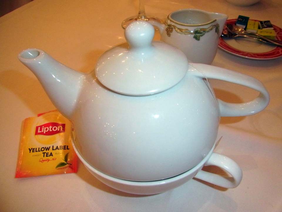 | そして、食後のお茶は部屋でも飲めるそうなので、部屋に運んでゆっくり飲んだ。お昼に買ったカヌレと、アルルで買ったお菓子を出してみたけど、さすがにもう食べれないかなと。。。一口だけ食べた。 |