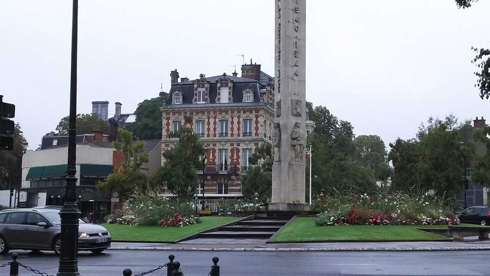 | この上の碑はアフリカ兵士のお墓らしい。第1次世界大戦のものと思われるがフランスには結構あちこちに戦争の時の兵士を祀って墓碑がある。そしてここでとんでもない事件が起きる。前のカゴにカバンを入れていて、その中にカメラを入れていたが、チャックを閉めてなく、すごく石畳のところを自転車でドンッドンッドンッと下ってる時にカメラがカバンから飛び出し、石畳に2、3度打ち付けられながら転がった。そして、電源を入れてもレンズが出てこなくなり、蓋も開かなくなった。。。ロンドンのレストランでストラップを忘れて来なければ首からぶら下げていたのになあ。。。とりあえず、古い方のデジカメも持ってきているので、そちらで代用。。。結局日本に戻ってから修理に出したら17000円もかかった。 |