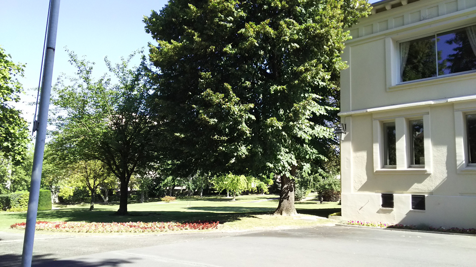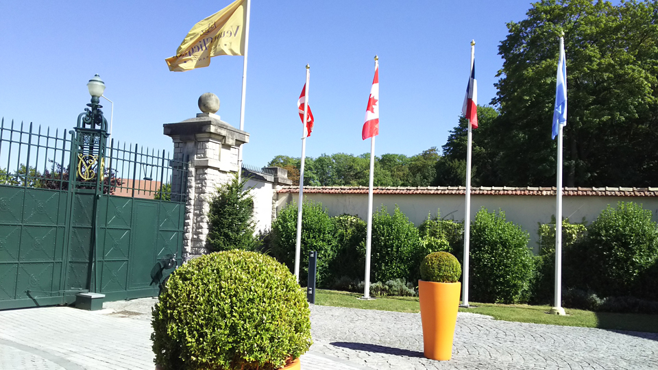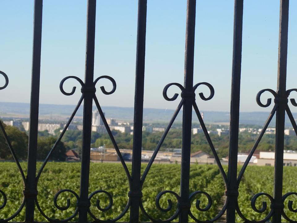 ホテルの前の道の突き当たりもドルエ・デルロン広場になっている。シャンパーニュ公園はものすごく広く、入ってしまうと時間に間に合わなさそうなので、チラ見して、写真とってヴーヴ・クリコへ。一番右の写真はレ・クレイエール。ここでお昼ご飯だけでも食べようかと思ったが、たぶんすごく時間かかって次の訪問に間に合わないのでやめた。 |