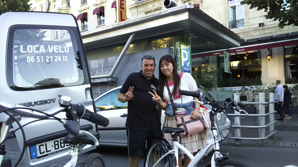 すべての予定を終了してホテルに戻ってきたらまだ時間があったのでいいことを思いついた。フォシエでシャンパンを買う予定だったので自転車があるうちに行っておけば重くない。昨日の感じのいいお姉さんは今日はいなかったが、今日の人も愛想がよかった。そして、7時にManuさんが自転車を取りに来てくれた。「どう?便利だった?」と聞かれたの |
