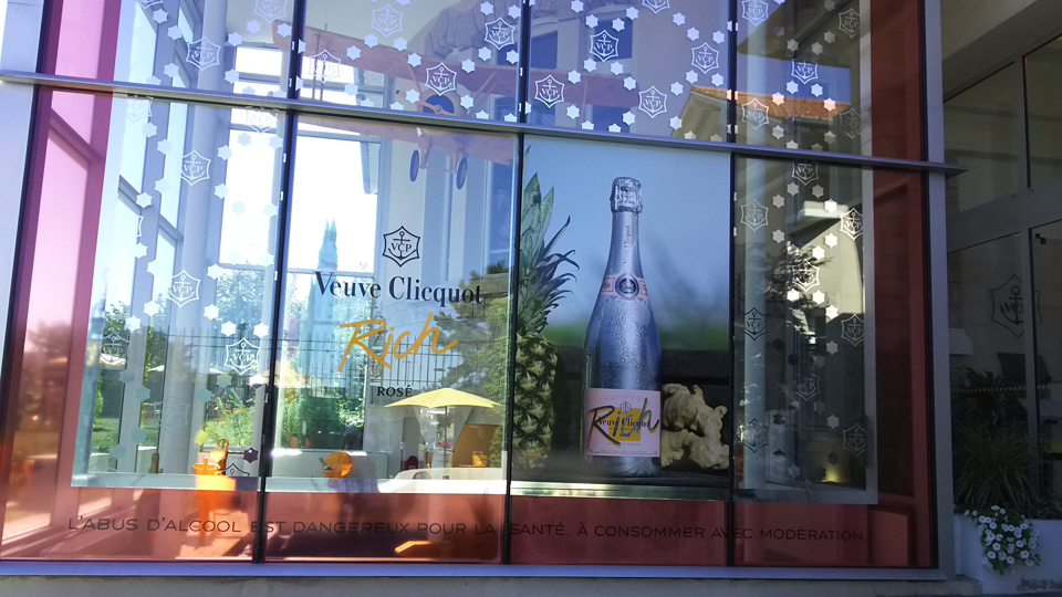 さて、いよいよ試飲♪本日も3軒訪問するので1杯だけのツアーに。さすがヴーヴ・クリコと思ったのは、グリッシーニがおいてある!そして、この右のテーブルの上のヴーヴ・クリコリッチ、実はこの新発売に先駆けて青山で3日間だけ飲めるイベントをやっていたのを終わってから知り、とても残念だった。氷を入れて飲むタイプで、夏の暑いときにぴったり!その場でも有料で飲めるようだった |