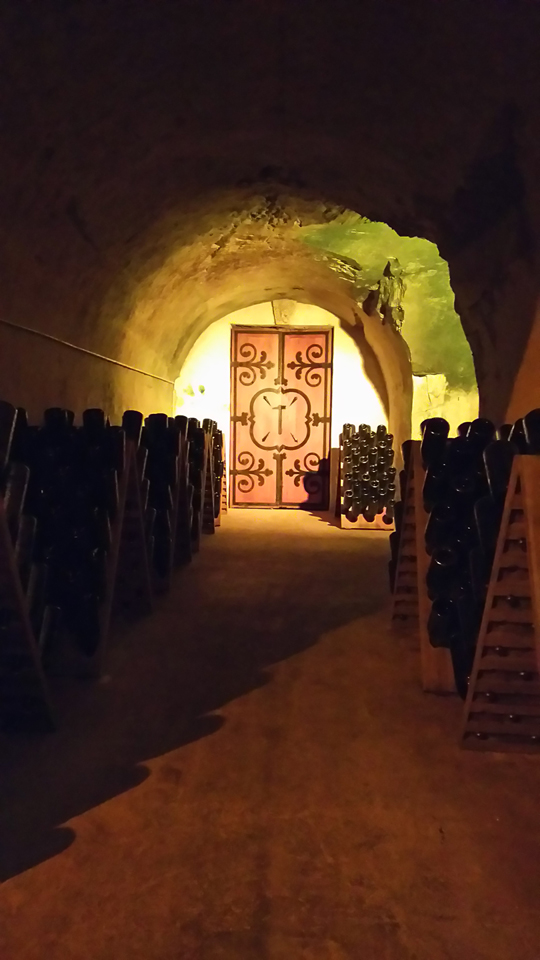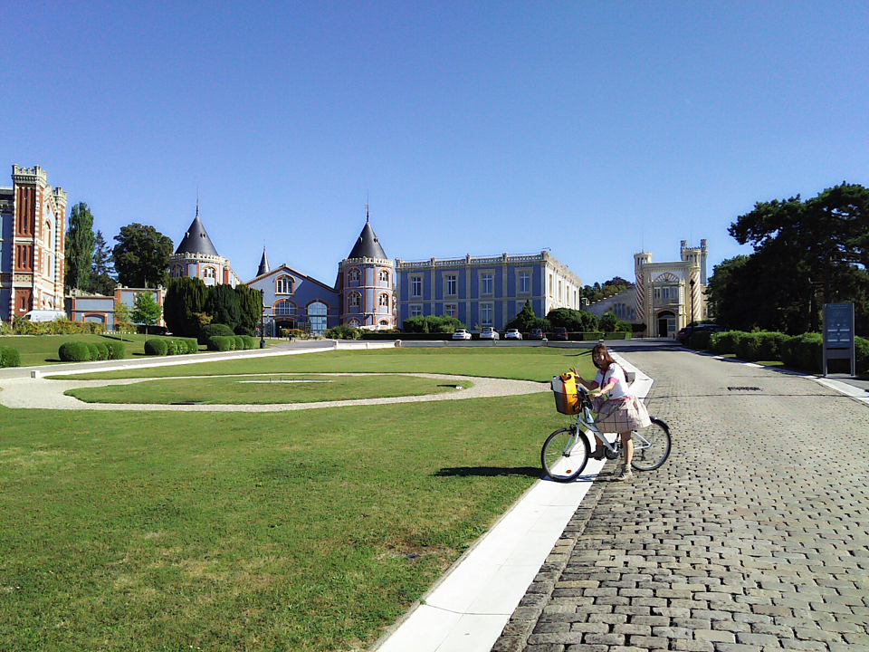 そして、本日の最後はポメリー!庭がすごい!!そして建物もテーマパークのようで、思わず自転車に乗ったまま何度も撮影(笑)入り口でチケットの予約のことをいい、中に入る。ただ、昨日から合わせて地下カーヴに入るのは6回目?寒いし、すべて同じに見えてくる(笑)ただ、ポメリーは地下の壁画が多いのと、カーヴの中に世界中の地名 |