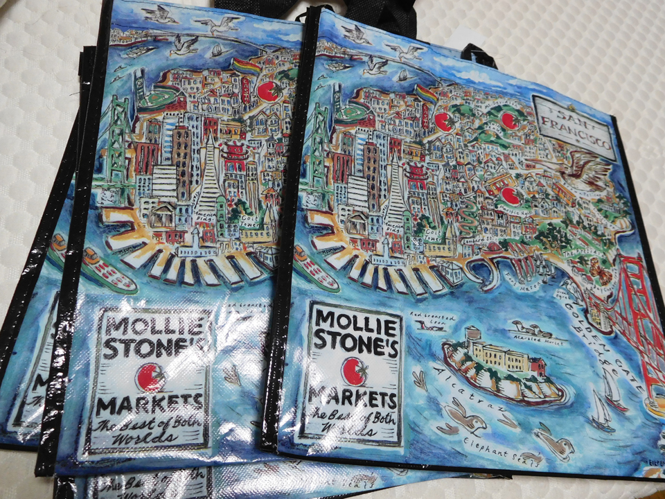 今朝はゆっくりめに起きた。サン・マテオでお祭りやってるそうなので行くという話も出てたけど、空港のレンタカーに1時までにいかないとなので、お土産調達がてら、サンマテオの中心地にある高級スーパーや文房具やさんにつれて行ってもらった。まずはモリー・ストーンズ。ここのエコバッグがサンフランシスコ柄で結構可愛い! |