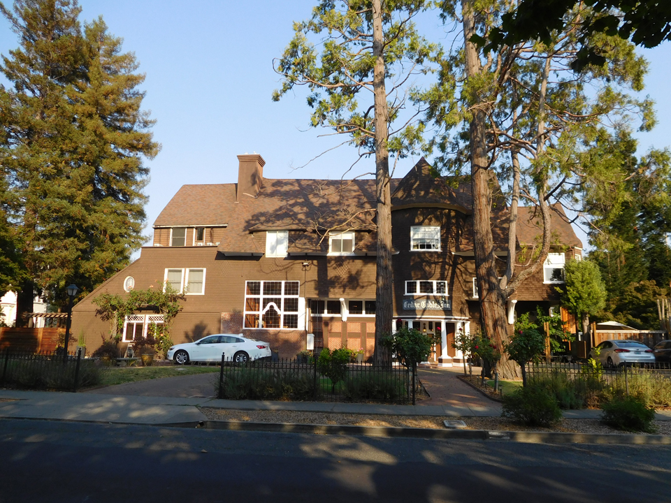 | そしてホテルへ戻ってきて、写真を撮る。ここのホテルは玄関がいつも開いてなくて、フロントもない。フランスのシャンブルドットのような感じ。でもその割には結構高い。というか、ナパは観光地のせいかホテルが高い!フランスの田舎でこの値段ならシャトーホテルに泊まれる。 |