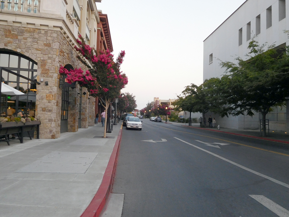 | そして、今日の夕食はカリフォルニア料理のレストランBasaltへ。歩いて10分くらいかなあ。途中裁判所があったり、教会があったりして。ただ、このレストランはナパ川にかかってるサード・ストリートの橋の近くにある。堤防が高いのか普通にはナパ川が視界に入ってこなくて、川をちゃんと見れてないのが残念。 |