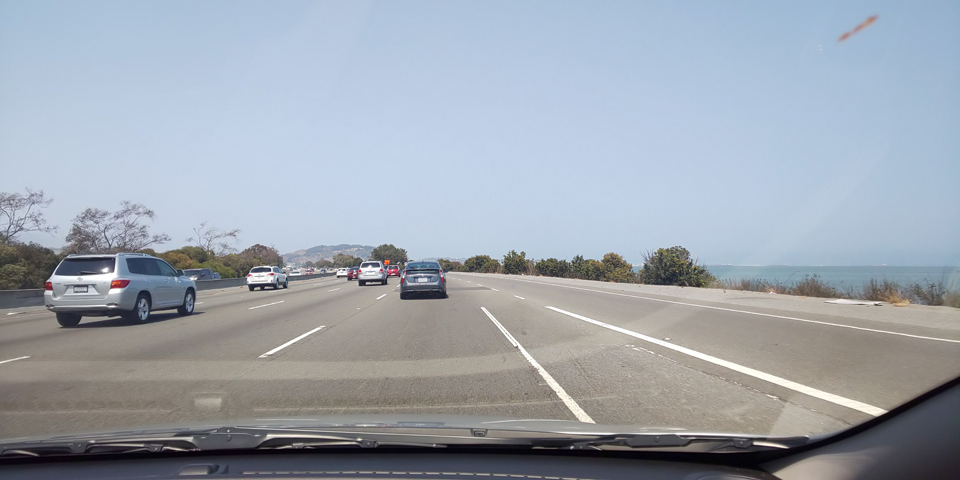 1時前にダラーのカウンターに着いたので余裕かと思っていたらなんと大行列!!いつもフランスでは田舎でしか借りてないので行列を予想していなかったので焦る。。発車したのは結局13時40分。予定を少しオーバーする。アメリカでの運転は29年ぶり。それも都会での運転は初めてなので最初はちょっと怖かったけど、すぐに慣れてきた。 |