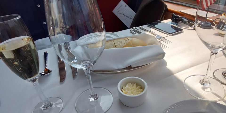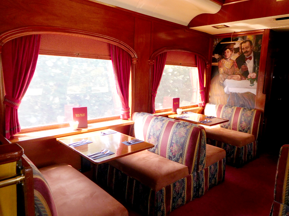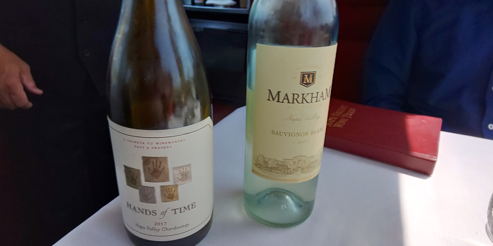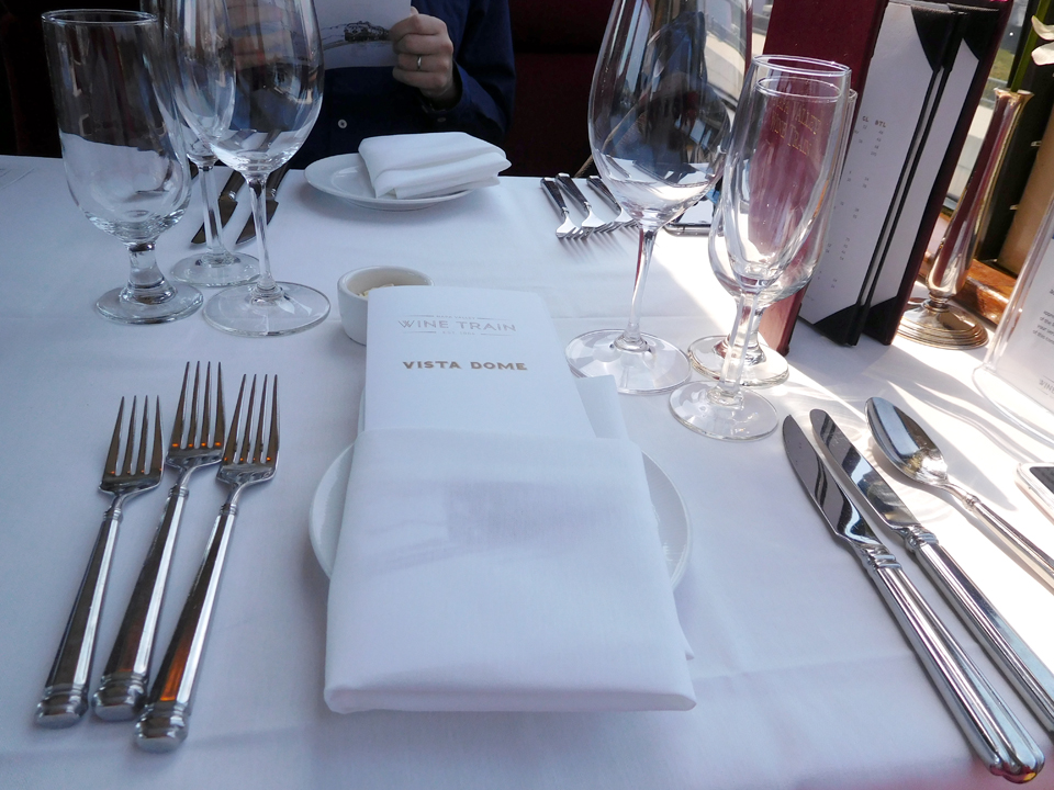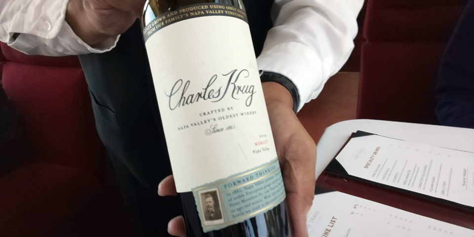 | ところで、このワイントレインには2種類の座席があって、ビスタドームとグルメエクスプレスという2種類の座席がある。ビスタドームは1人224ドル、グルメエクスプレスは129ドル。最初はどちらでもいいかなと思ってたけど、神の雫の23巻で遠峰とローランが乗ってたのもビスタドームだし、去年友達が行って写真見せてもらったのもビスタドームだったので、それにした。上のサイトから予約する。もちろんワイン代は別料金。最初のウエルカムスパークリングは1杯ついていた。 |