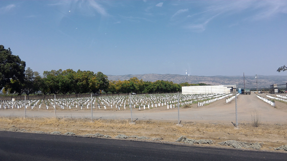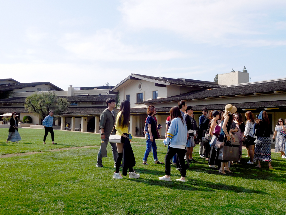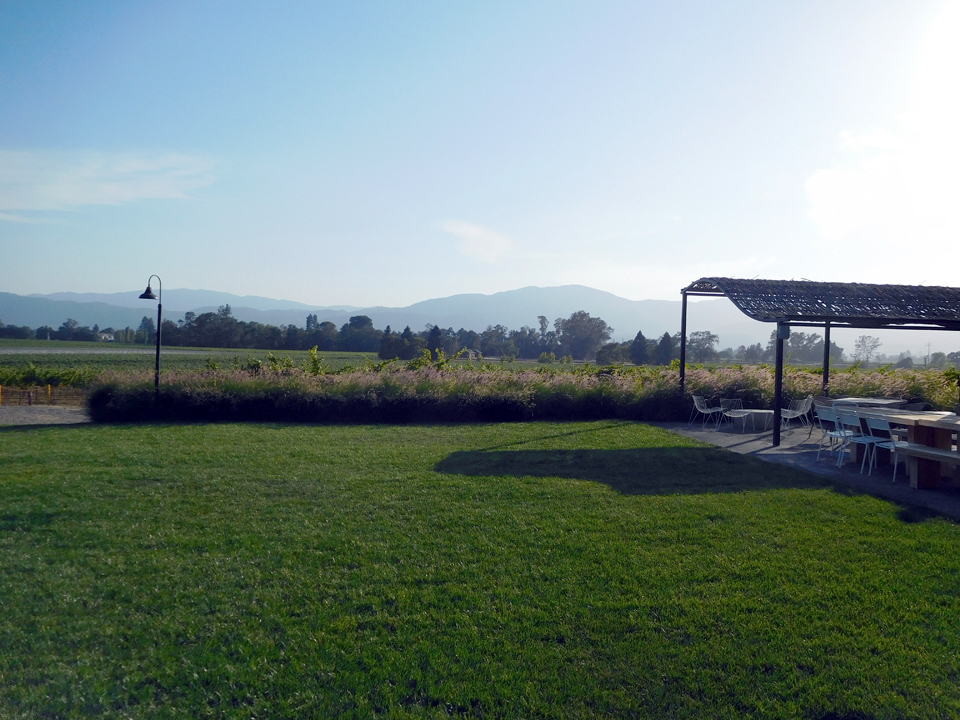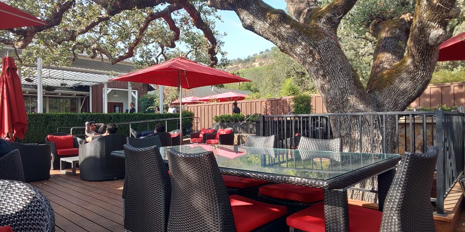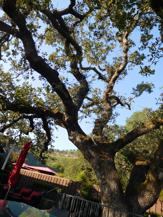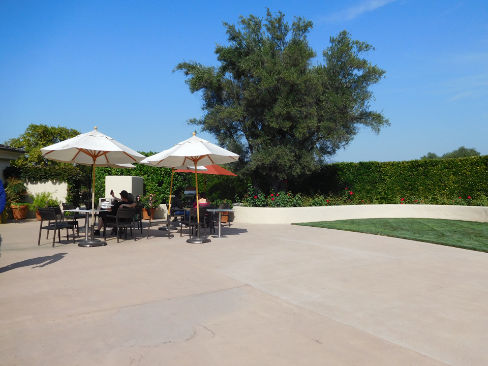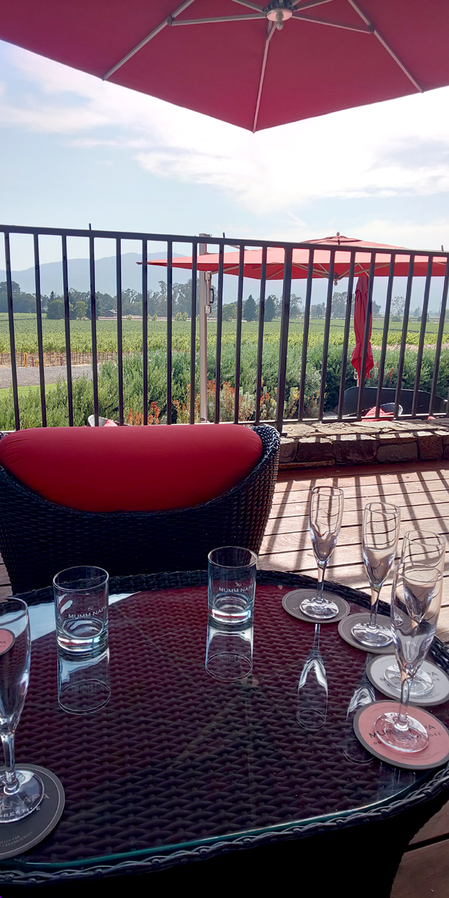 そして、次は16時半から予約していたマム・ナパへ。マムの試飲はテーブルでの試飲20〜35ドル、オークテラスでの試飲45ドル、試飲を含むツアーの3種類があり、ツアーは時間がないので試飲だけ、それもオークテラスだとDVXというスペシャルキュヴェが飲めるのでそれにした。マムは日本で買えないので貴重です。 |