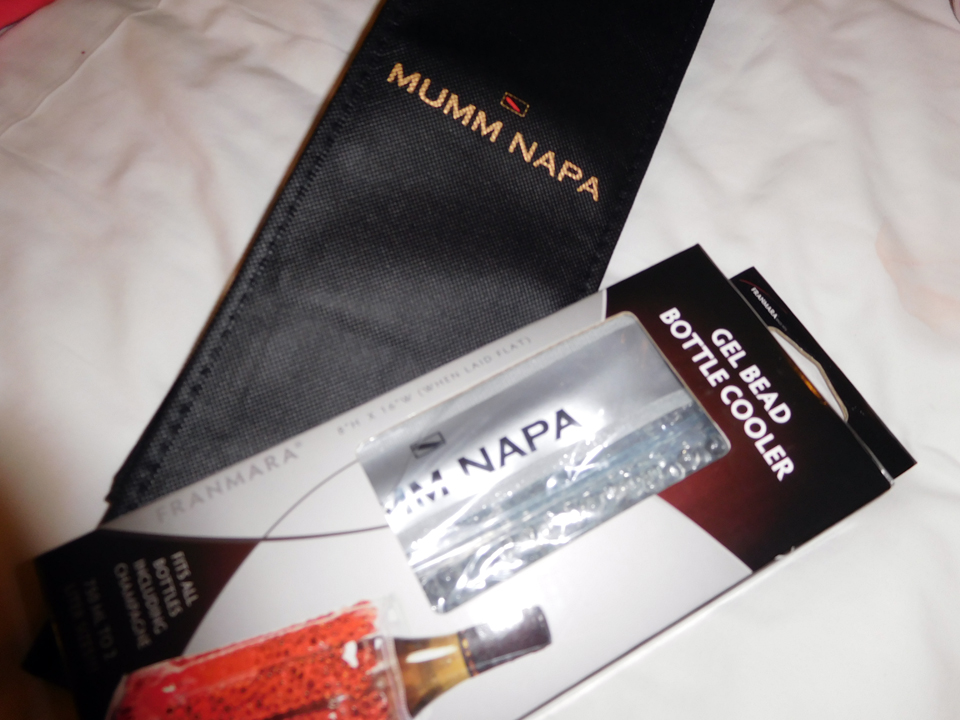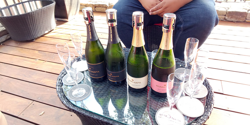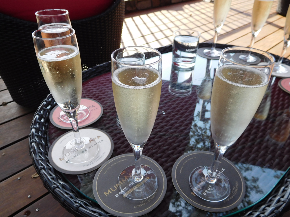 | そして、日本では買えないのでワイン会用と家用に2本買う。そして、マムのスパークリング入りのチョコやキャラメルが売っていたので3種類買い、記念にクーラーバッグも買う。しかし、ここすごいよかった!このオークテラスのロケーションと椅子がやばい(笑) |
