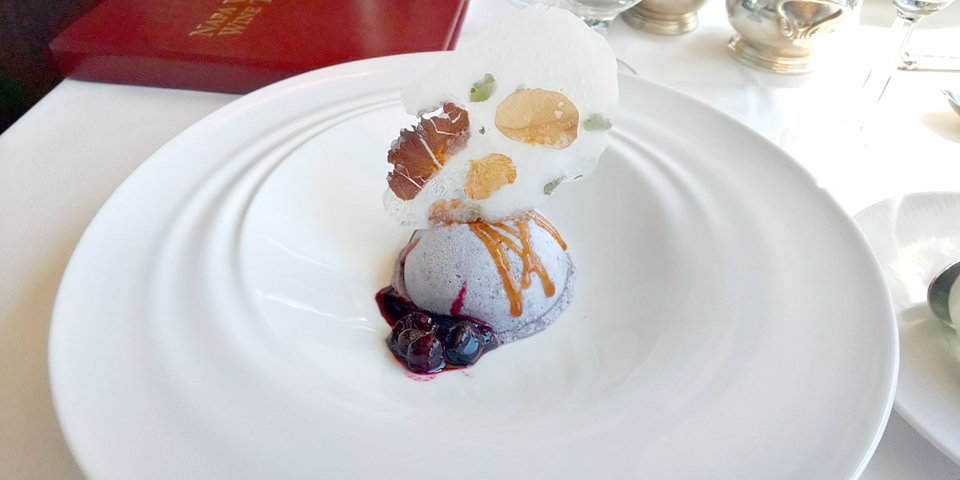 | ないのばかりで、何を食べたかあまり覚えてない。デザートも暑かったのでアイス系にしたけどブルーベリーラベンダーで微妙。でも電車に乗って、景色見ながらお料理食べてワイン飲んでってやっぱり楽しい♪チャールズ・クリュッグのメルロー、スタックズリープのシャルドネ、マーカムのソーヴィニヨンブランなどを飲んだ。あのクリュッグとは関係なさそうで残念。 |