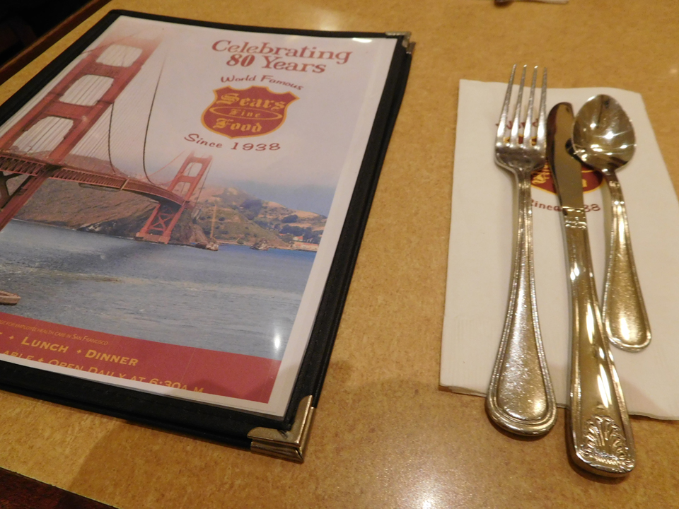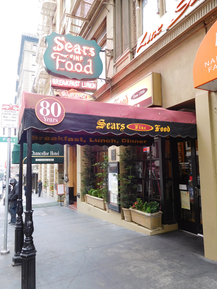 | 夜中にだーりんがまた37.5℃の熱が出ていたけど、足からの熱ではなく風邪っぽい。今朝はホテルで食べずに、すぐ近くのシアーズファインフードというお店へ。パンケーキが美味しいらしい。ハイアットから歩いて2.3分のところにあり、日本人らしきグループを何組か見た。 |