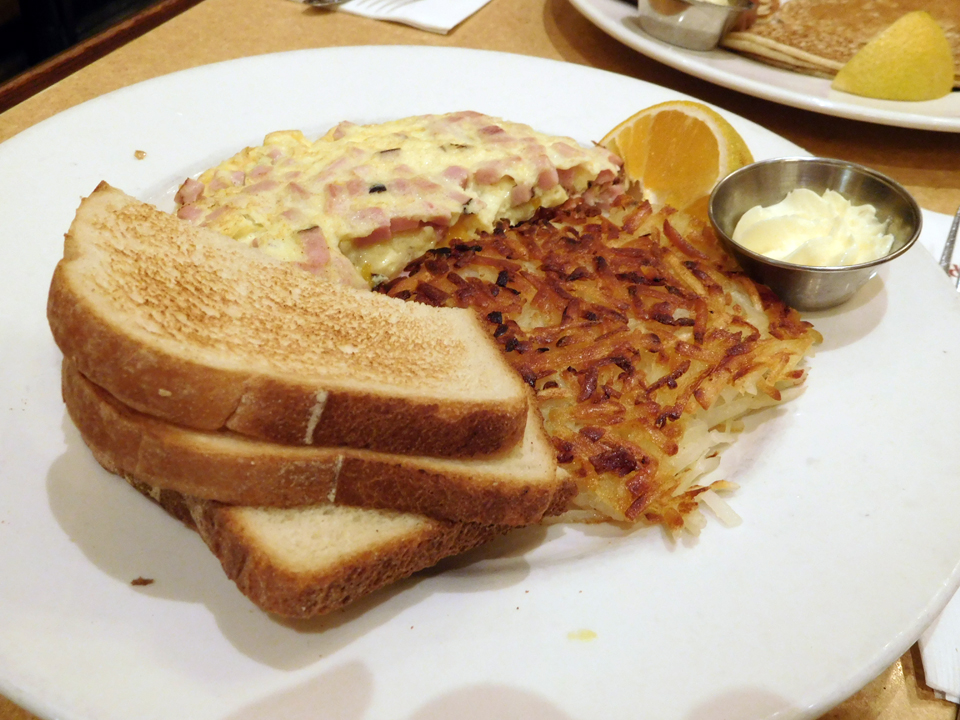 だーりんはパンケーキを頼んで、私はオムレツを頼んだら、なんとパンとマッシュポテトの量がすごく、だーりんは体調が悪いので私の分を手伝ってくれなかった。昨日のステーキの余韻もあって半分くらいしか食べれず。だーりんパンケーキ1枚もらったけど美味しかった。パンケーキにすればよかった。コインを1枚もらえて、レジの横にあるスロット |