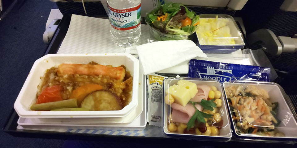 | エアカナダの飛行機みっけ。機内食はユナイテッドよりANAの方が、サイドメニューも色々あってボリューミー。サイドのハムとチーズで白ワイン♪そして、フランス便にはなかったスパークリングがありました(*^^*) |